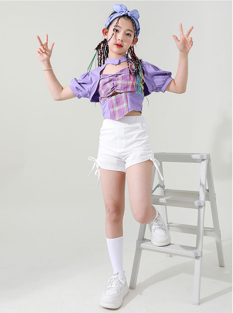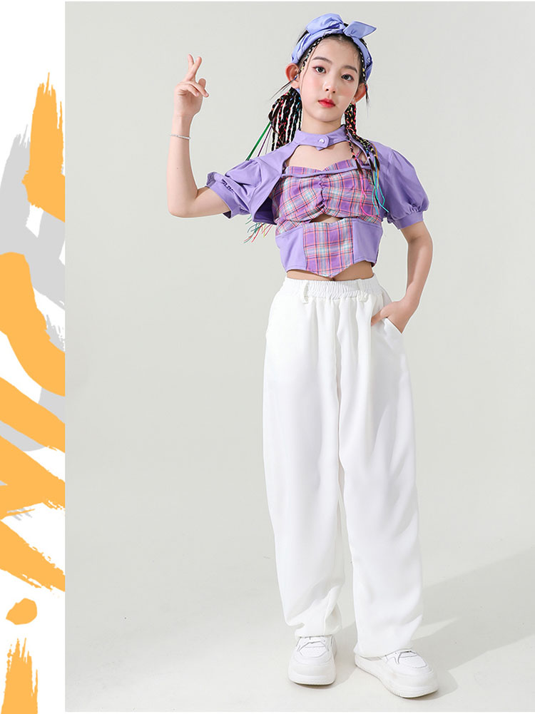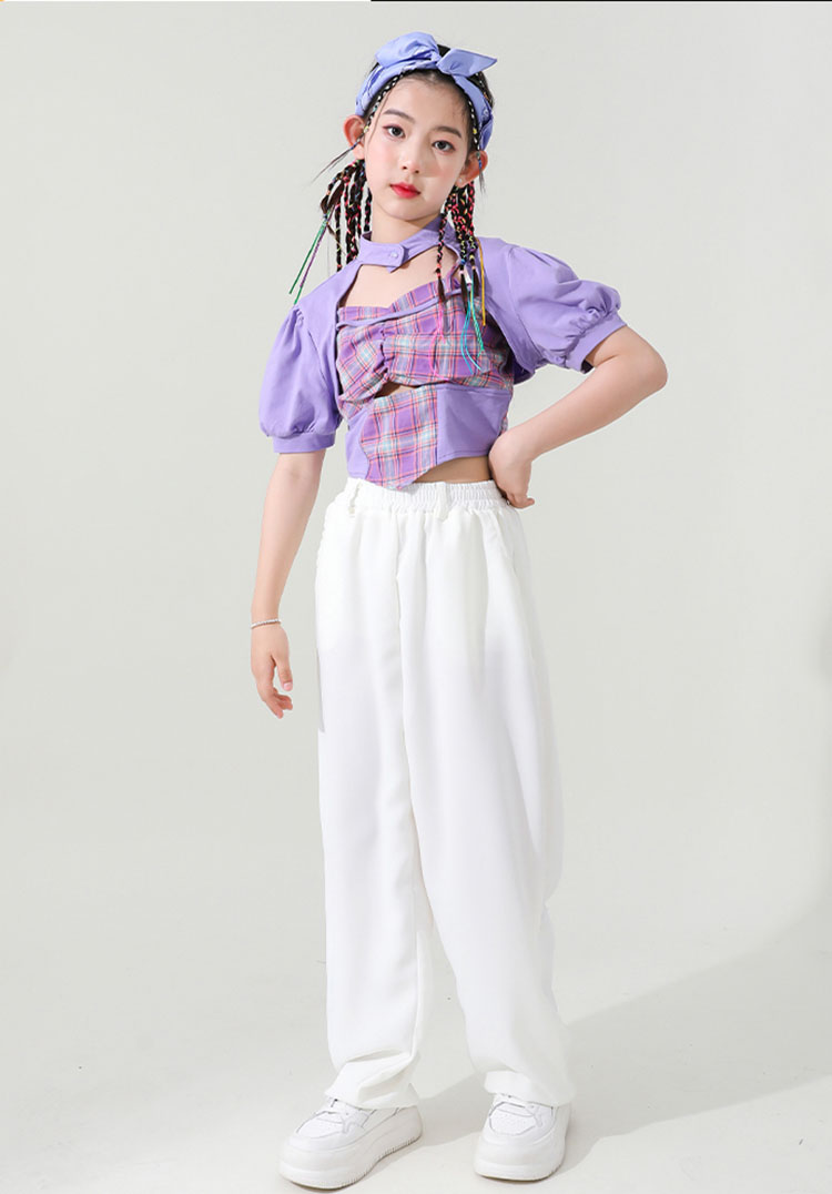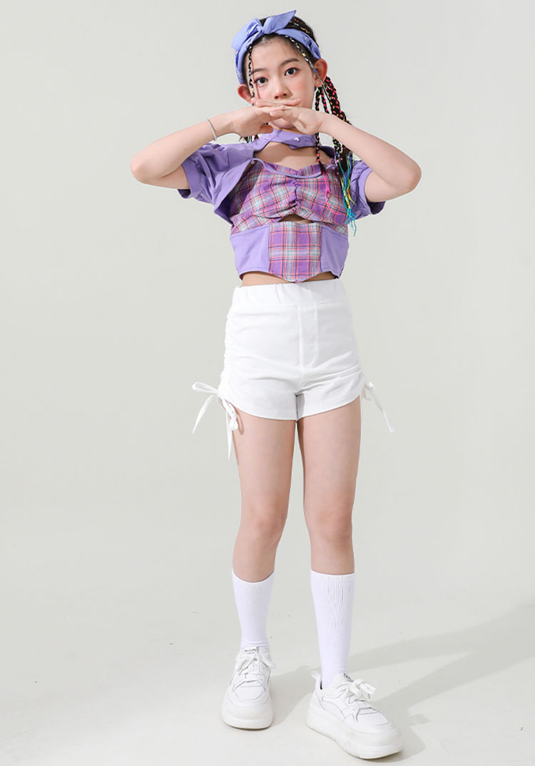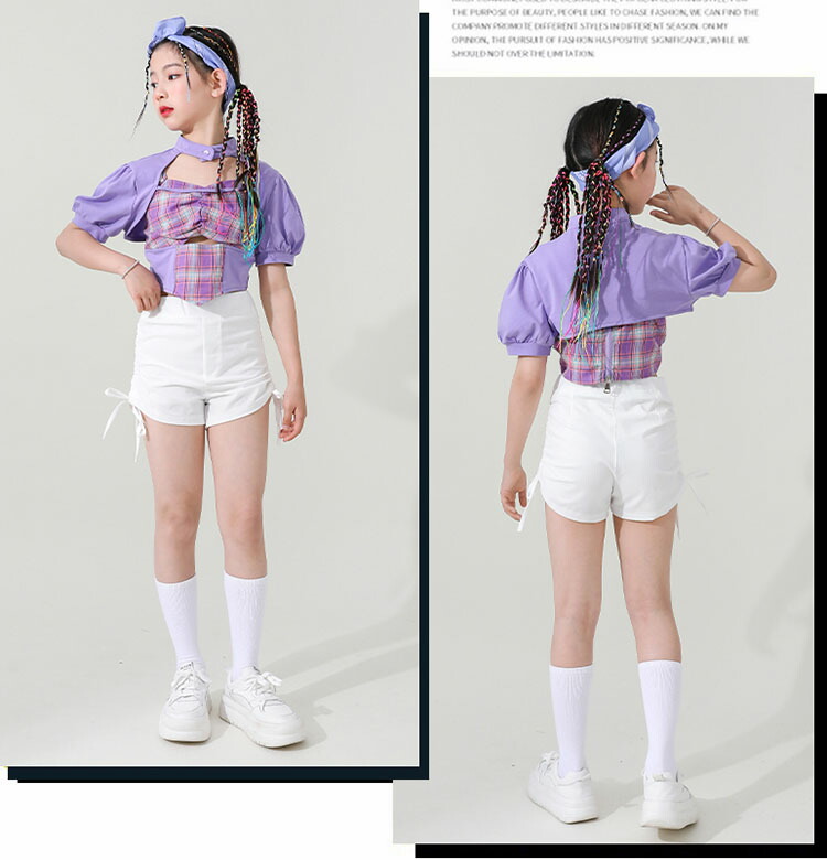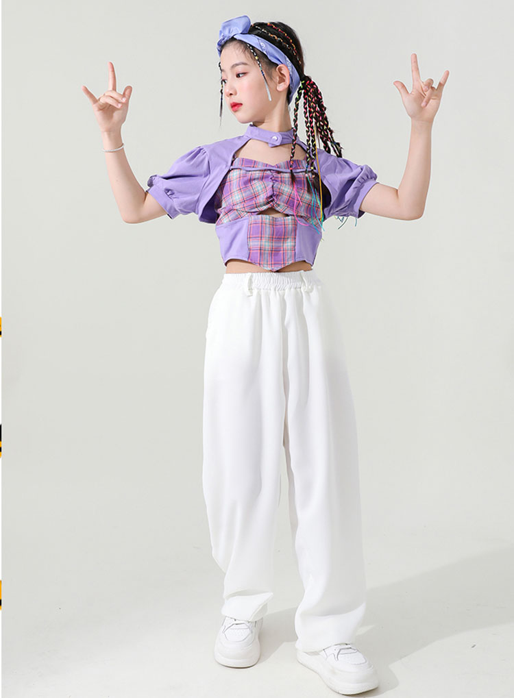 ダンス 衣装 キッズ 女の子 セットアップ チェック柄 トップス ホワイトパンツ ヒップホップ 2点セット ステージ衣装 子供 練習着 韓国 発表会 人気 おしゃれ 韓国 110-180cm