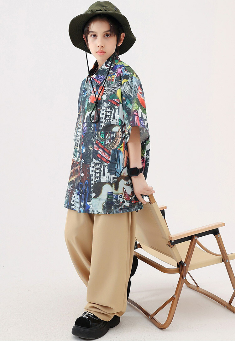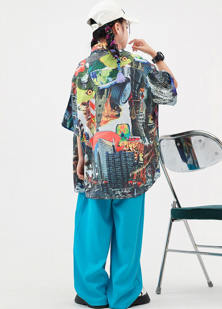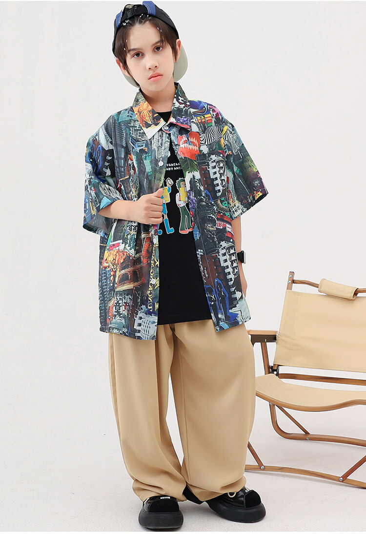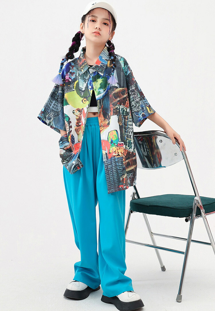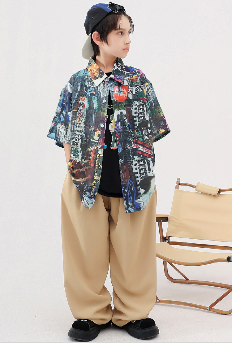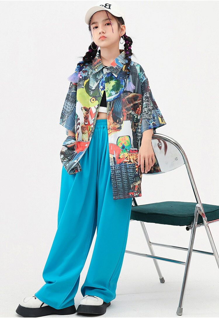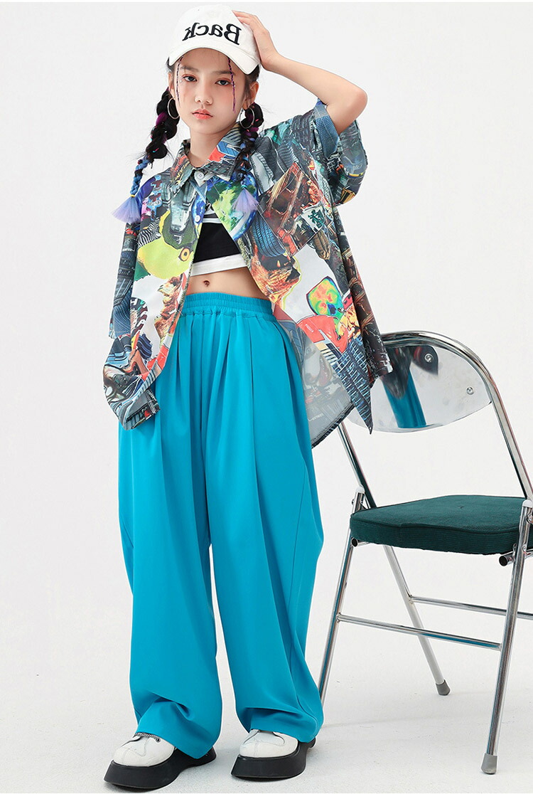 ダンス衣装 キッズ ワイドパンツ 花柄シャツ 半袖 ゆったり ユニセックスガールズ 韓国 ヒップホップ ジャズダンス hiphop セットアップ 演出服 応援団 練習着 110 180