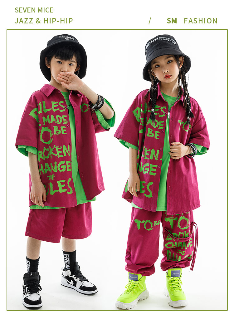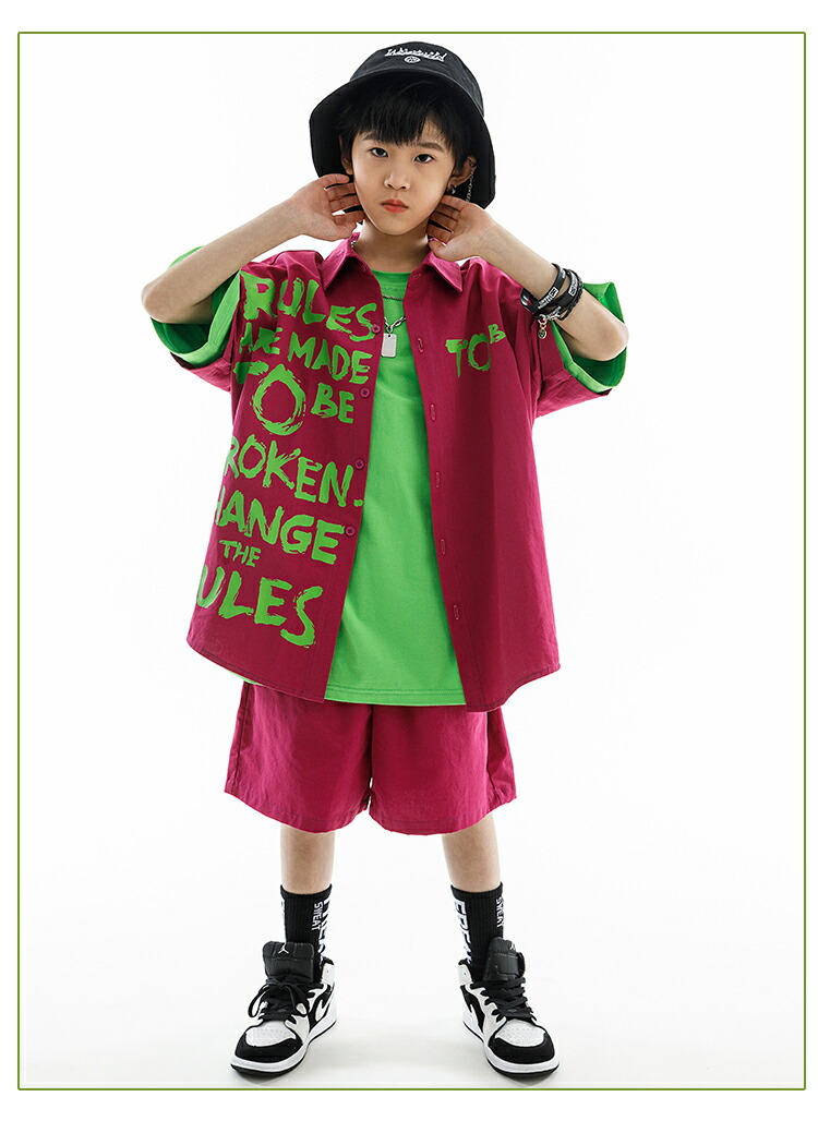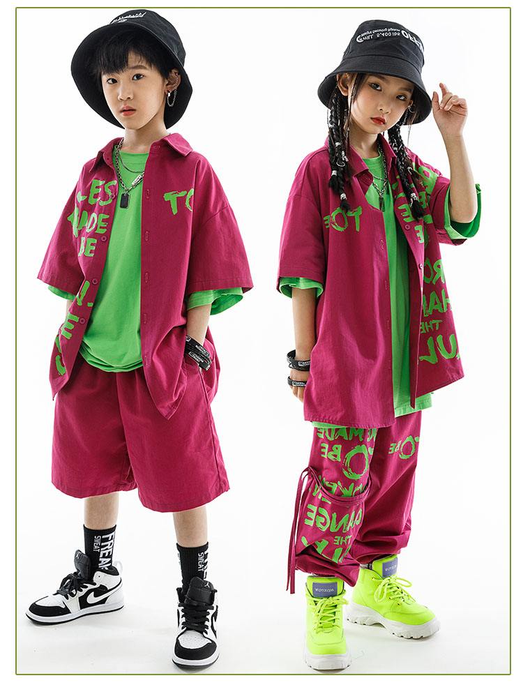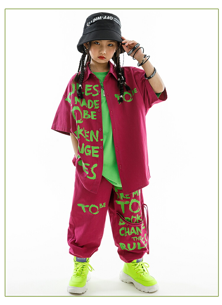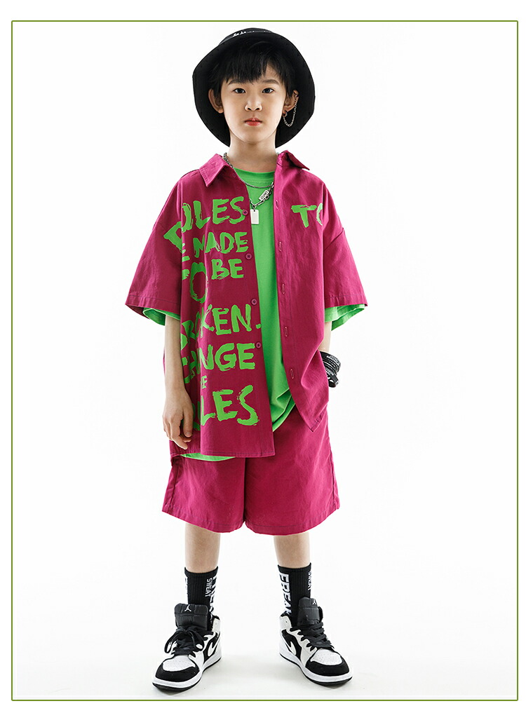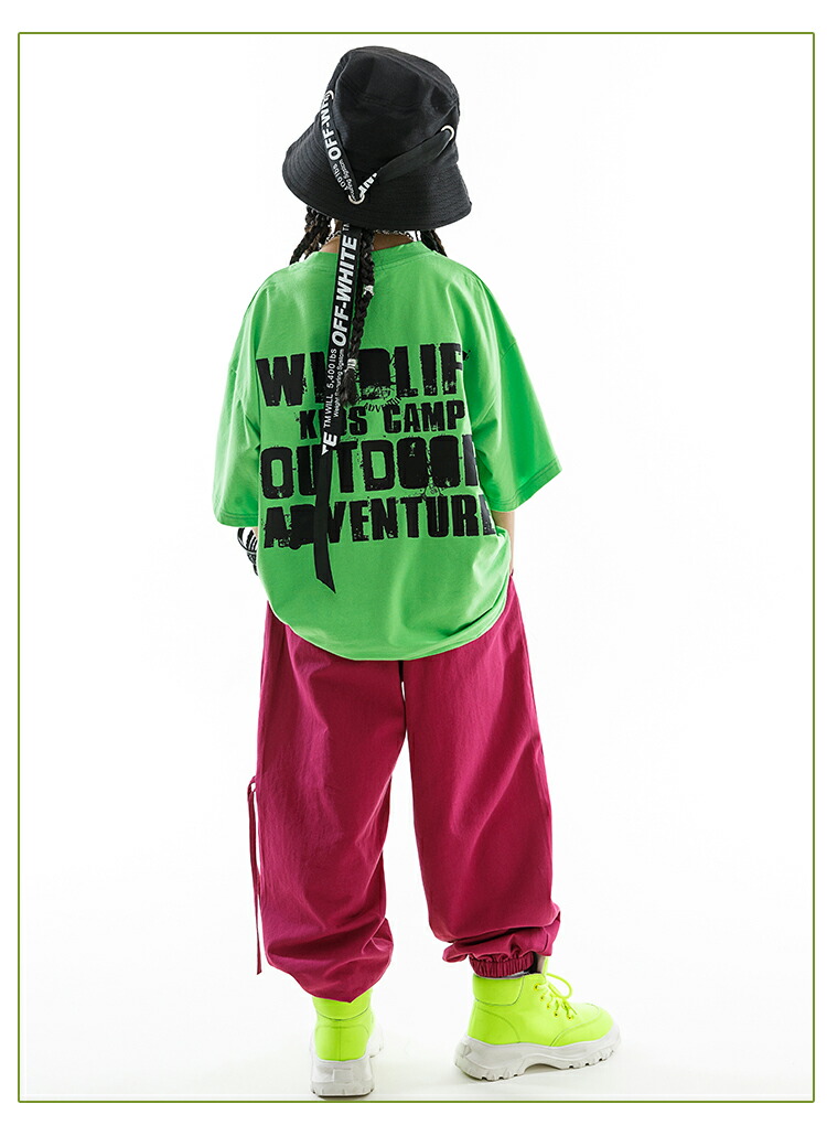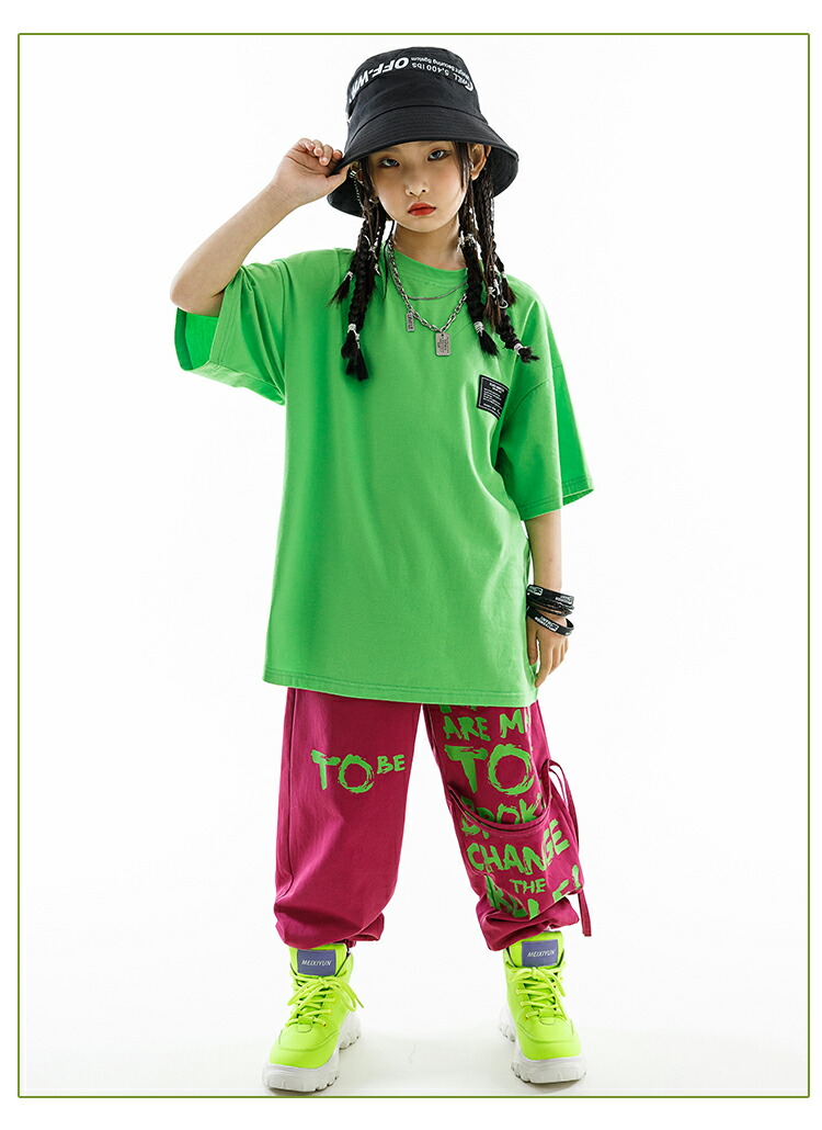 ヒップホップ ダンス衣装 キッズ セットアップ 半袖トップス パンツ 目立つ ジャズダンス ガールズ 韓国 ヒップホップ hiphop セットアップ 演出服 応援団 練習着 120 170