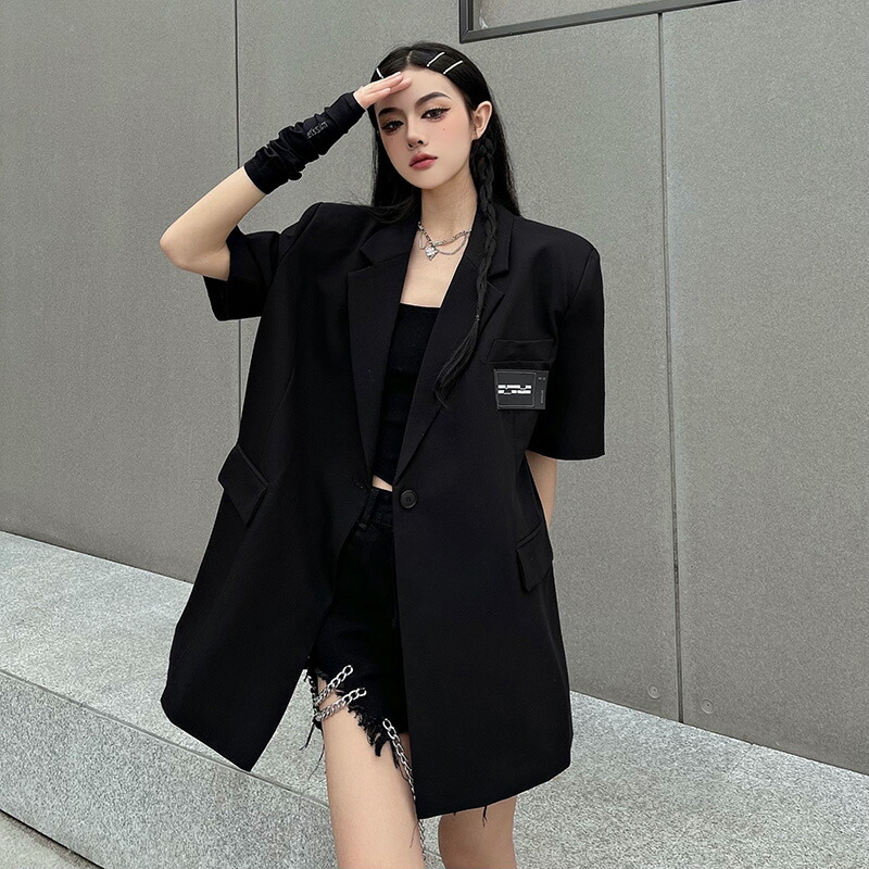 黒 ジャケット 夏 半袖 レディース
