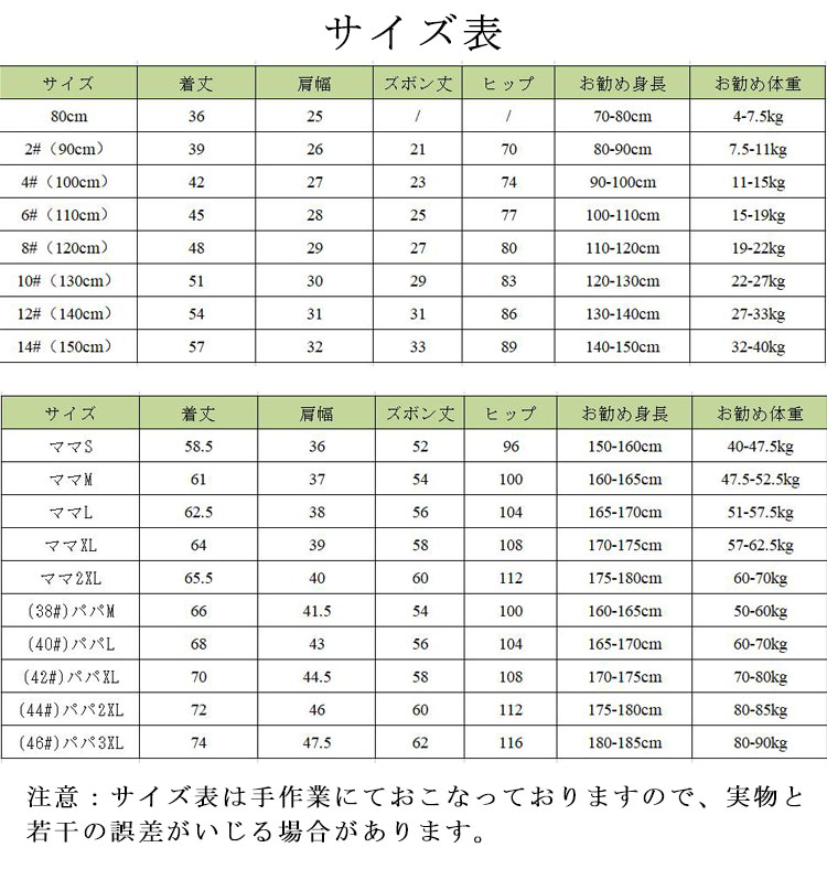vertical-key: キッズ80cm キッズ90cm キッズ100cm キッズ11cm キッズ120cm キッズ130cm キッズ140cm キッズ150cm ママ用S ママ用M ママ用L ママ用XL ママ用2XL パパM(38#) パパL(40#) パパXL(42#) パパ2XL(44#) パパ3XL(46#)