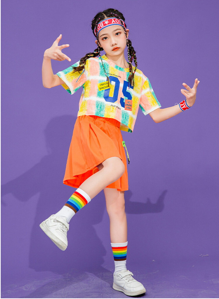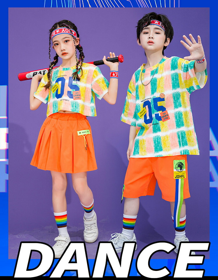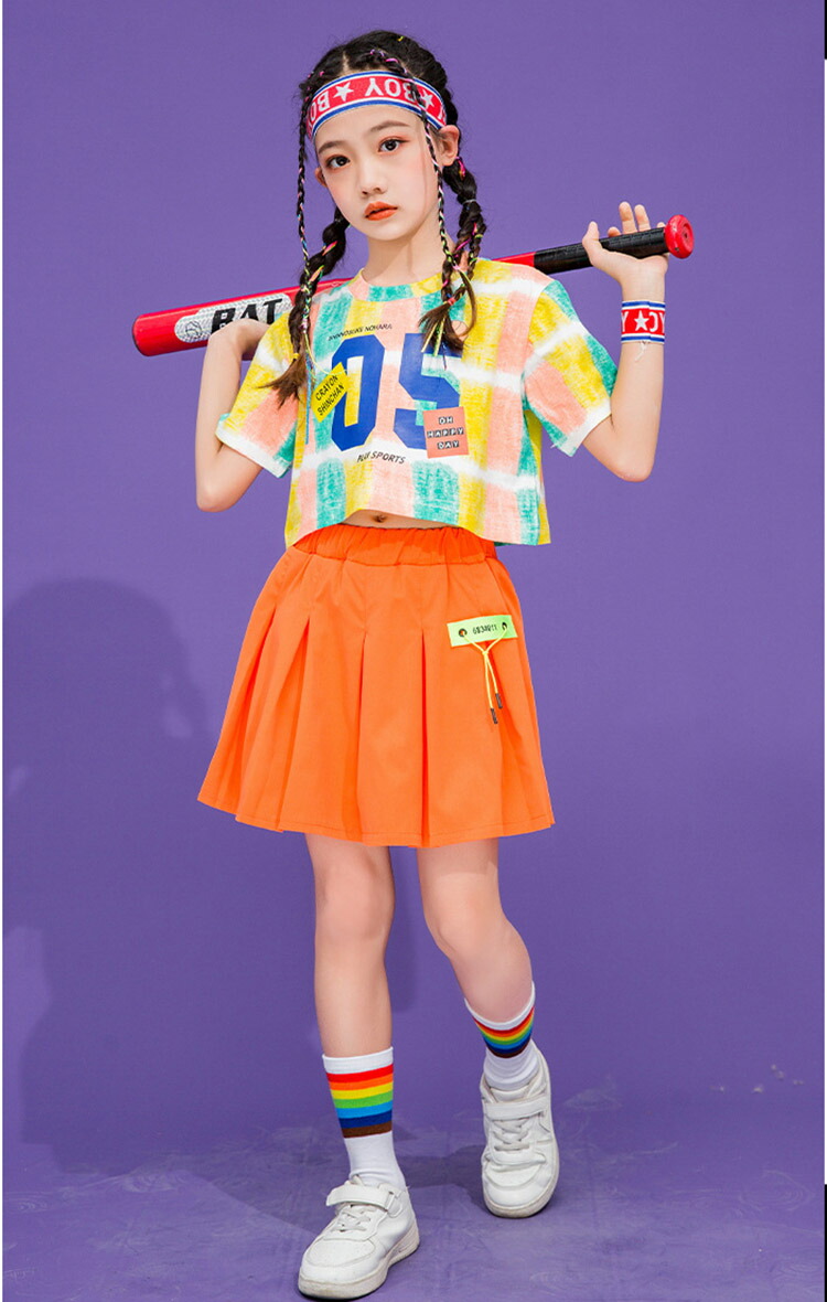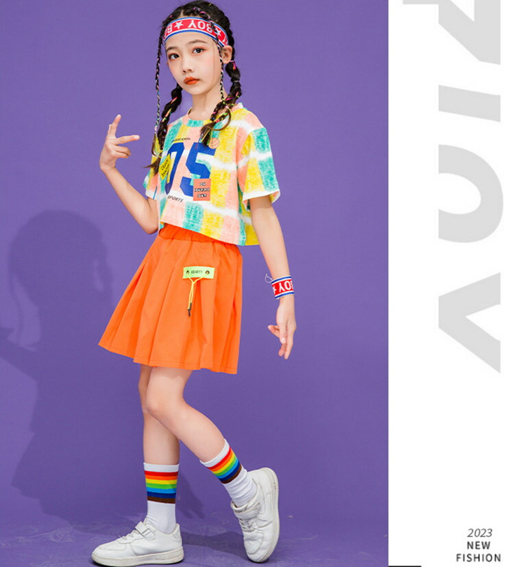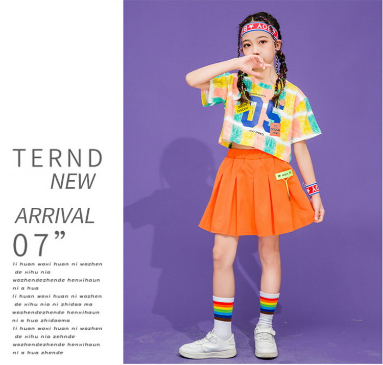 ダンス衣装 キッズ 上下セット 多彩トップス スカート ゆったり ジャズダンス ガールズ 韓国 ヒップホップ hiphop 演出服 応援団 練習着 110-180cm