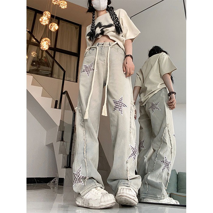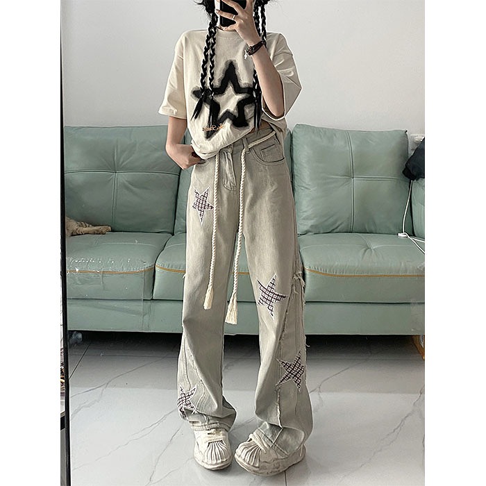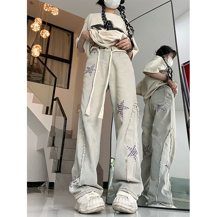 デニムパンツ ビジュー付き