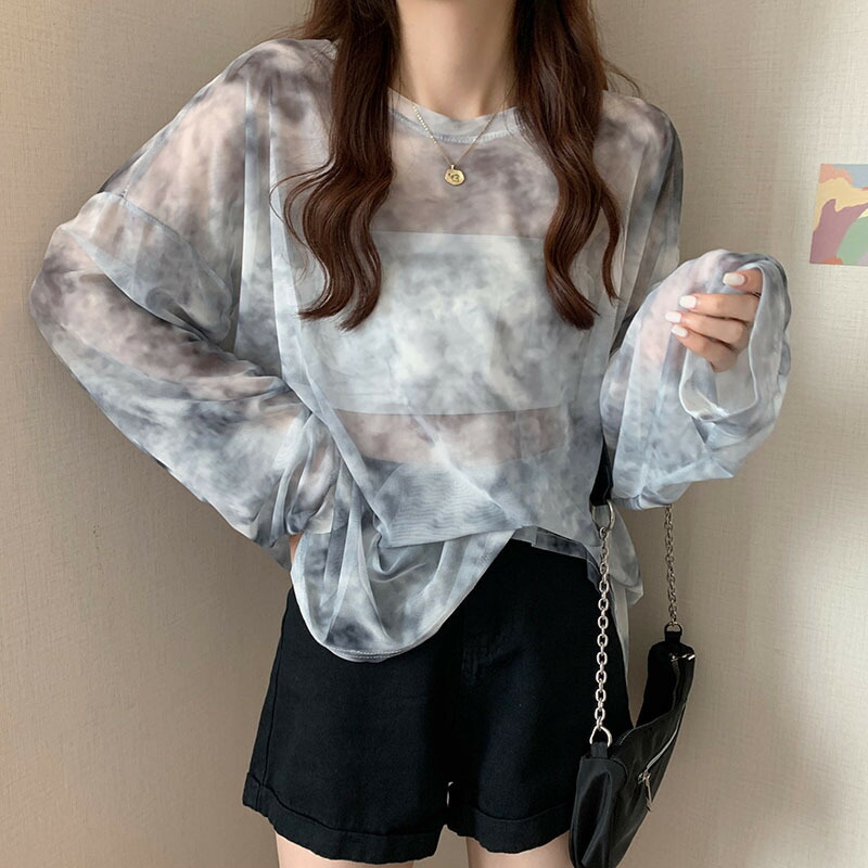 ダンス 衣装 大人 柄 トップス ゆったり ジャズダンス 透け感 長袖トップス シアーシャツ 韓国 ヒップホップ hiphop 演出服 応援団 練習着