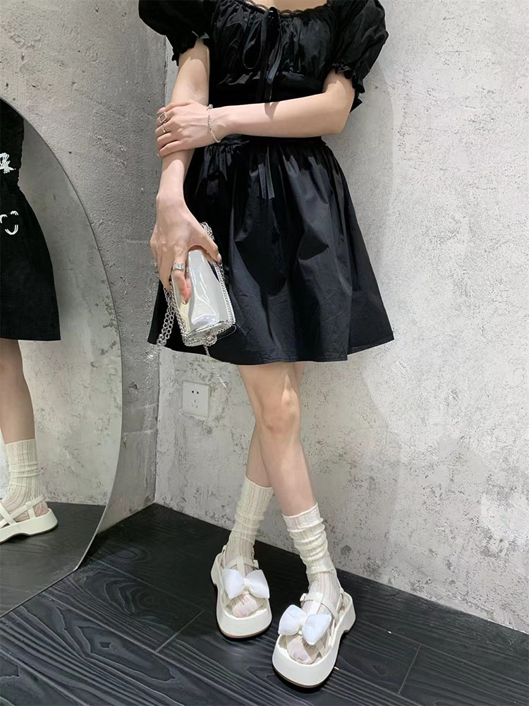 シアースリーブ ドッキングシャツ ボウタイシャツブラウス