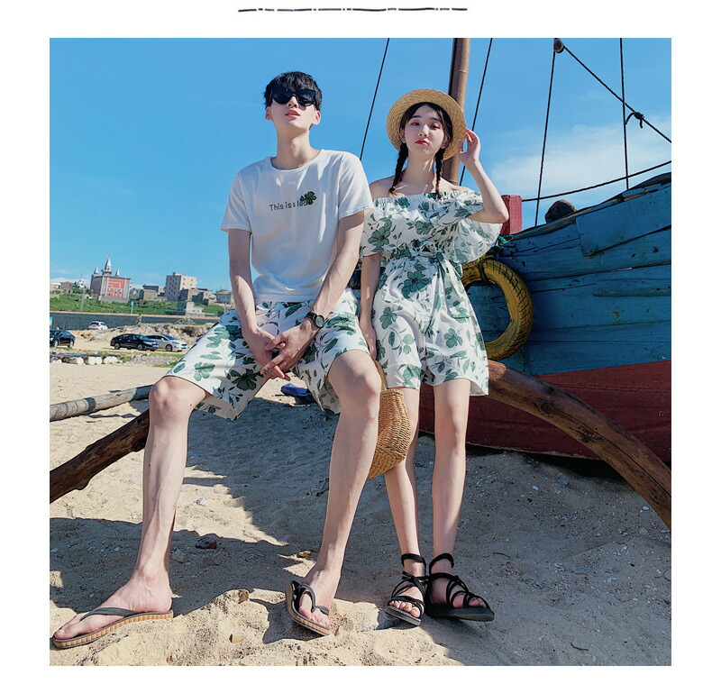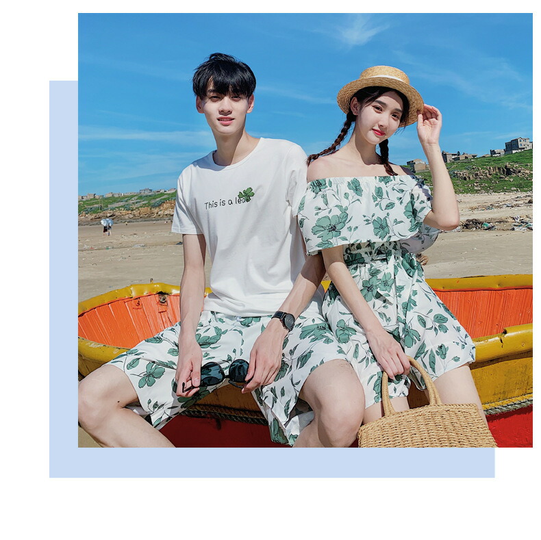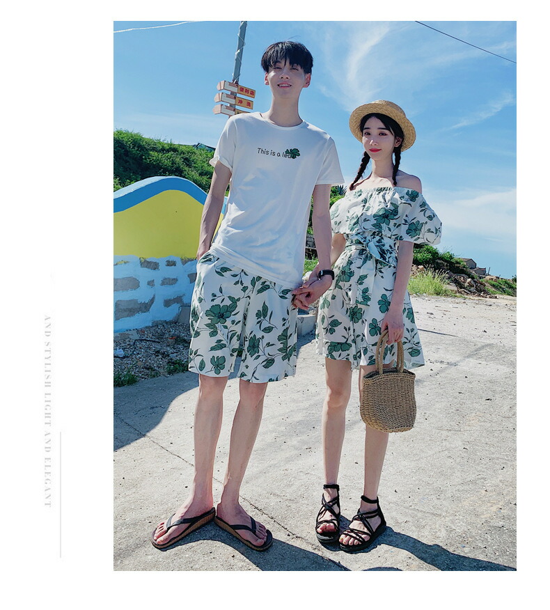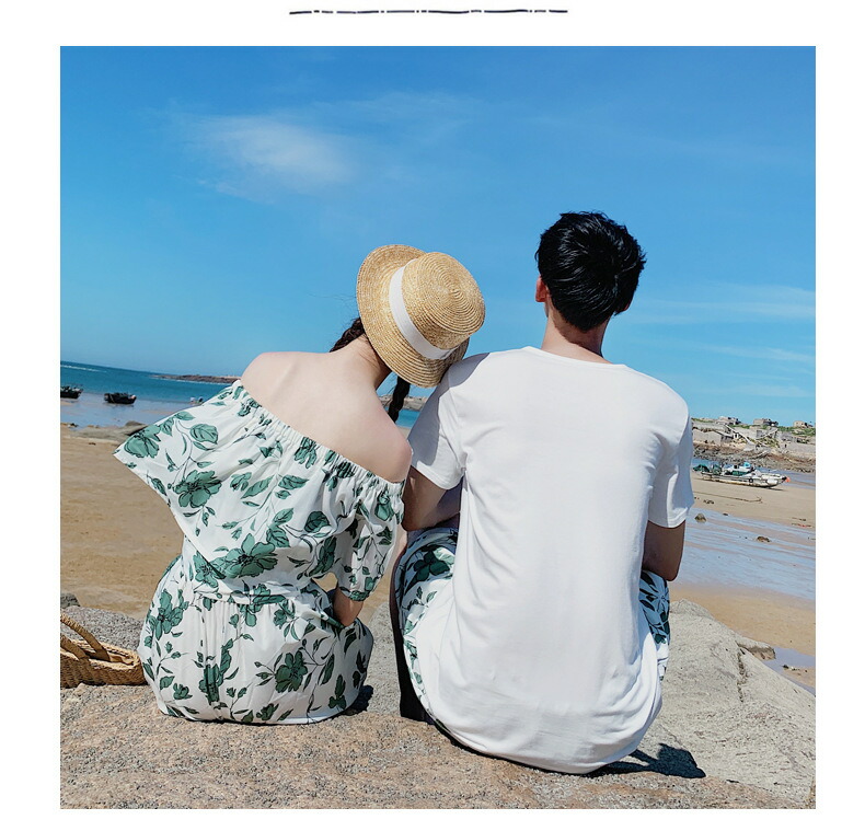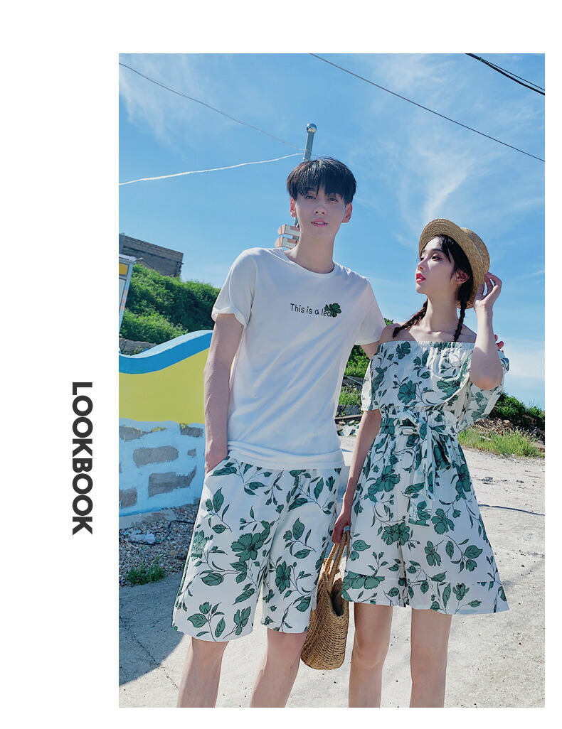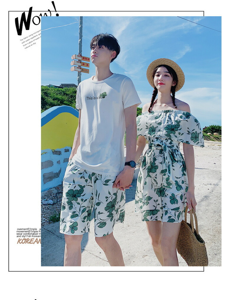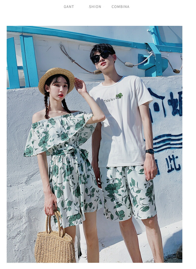 horizontal-key: 女性ワンピース 男性tシャツ+パンツ