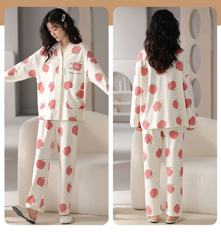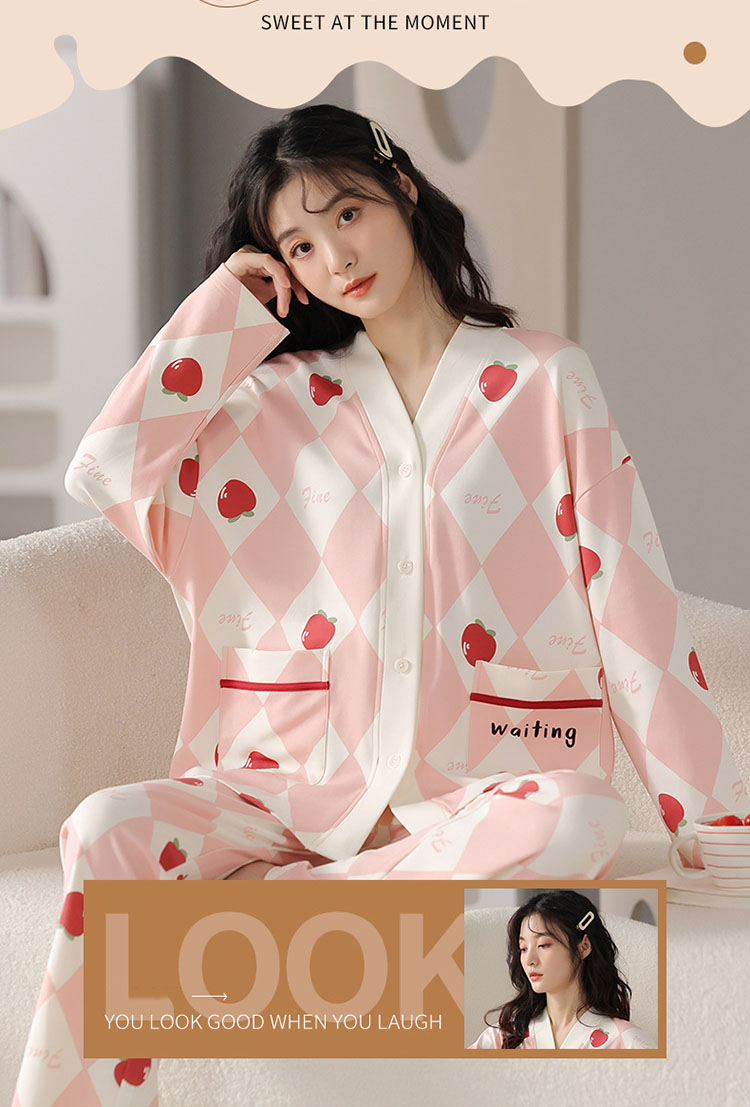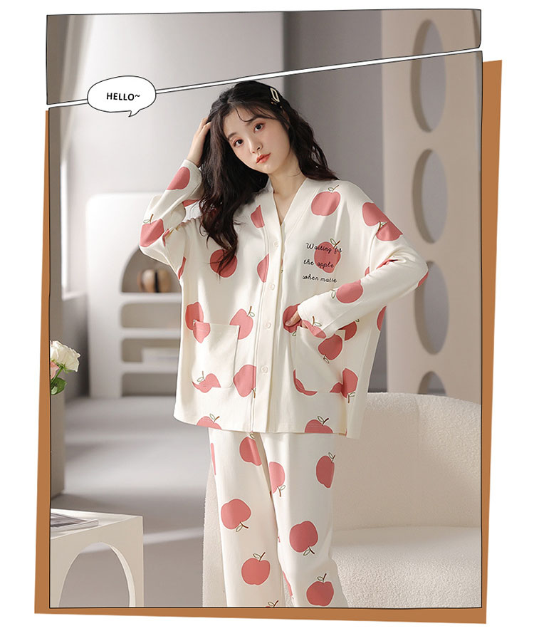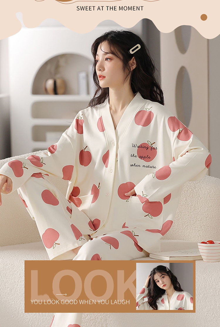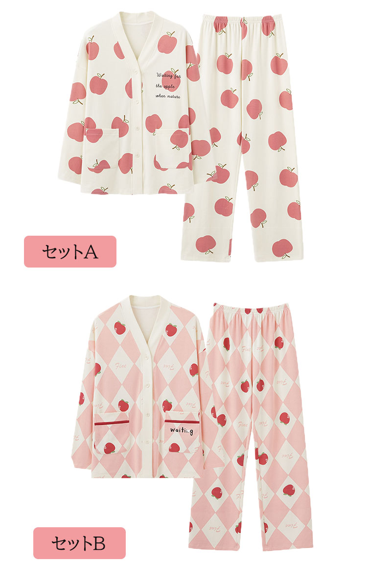 パジャマ レディース 春 長袖 綿 前開き ルームウェア 上下セット 部屋着 寝巻き 吸汗 可愛い パンダ柄 韓国風 出かける