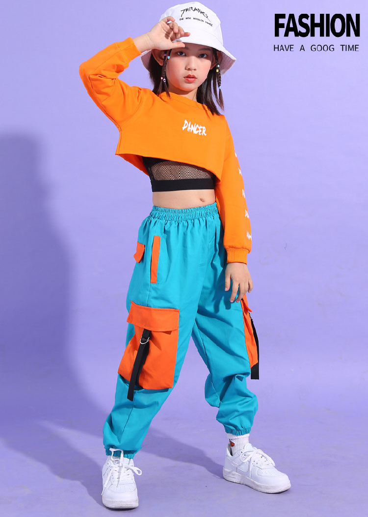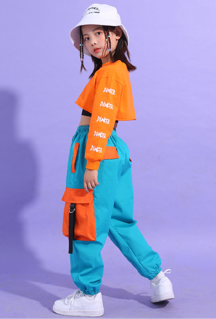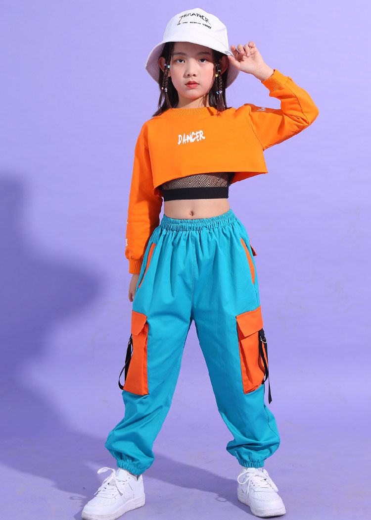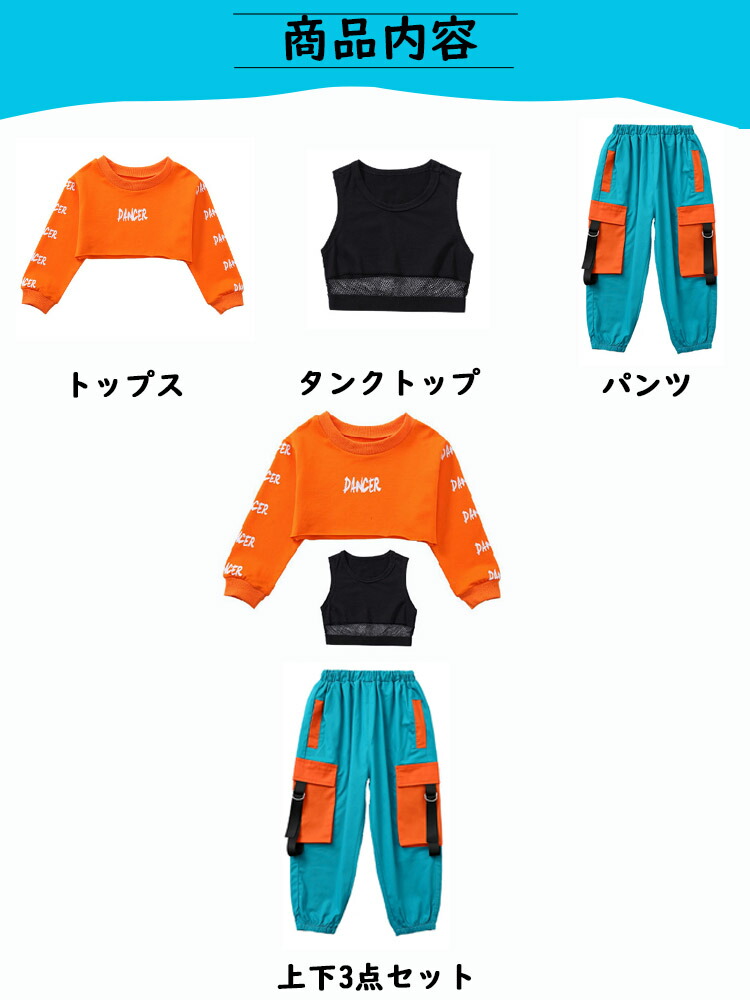 ダンス トップス へそ出し キッズ 青