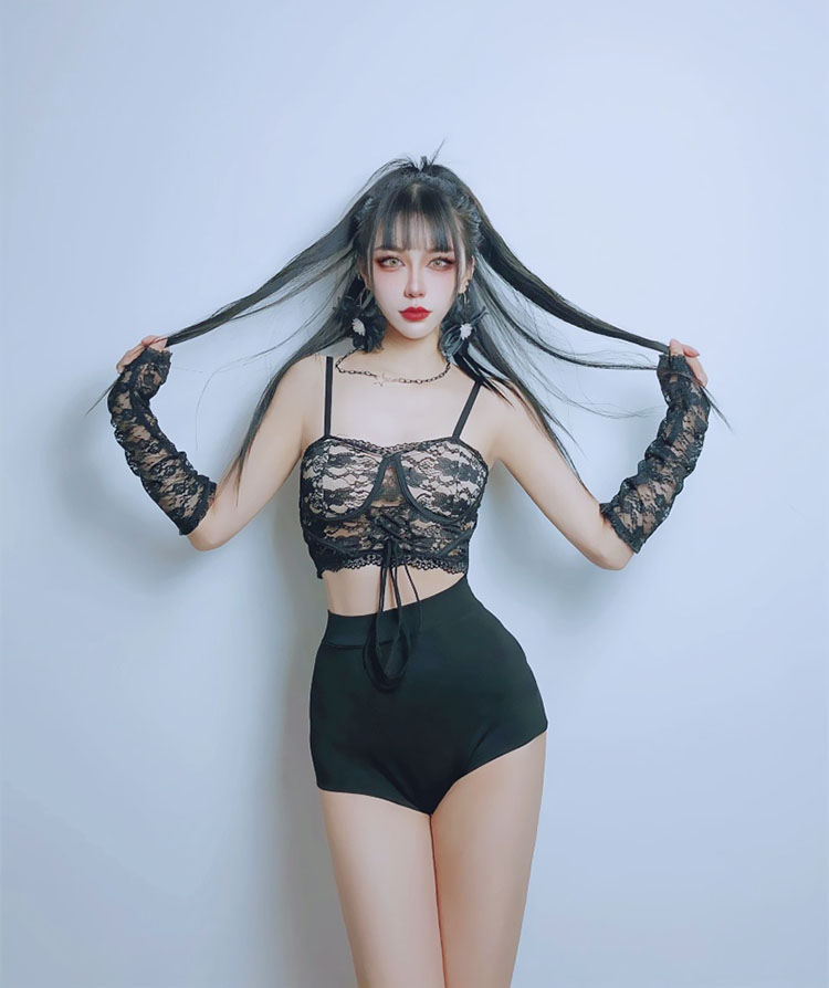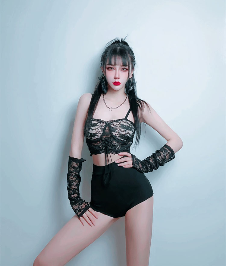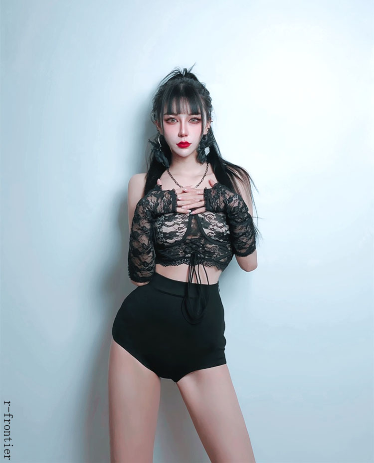 韓国 k-pop衣装 k-pop ダンス トップス 女の子トップス JAZZ レース 長袖 かっこいい シャツ ブラック オーバーサイズ S M L 韓国 ダンス衣装 ダンスイベント 応援団 ステージ