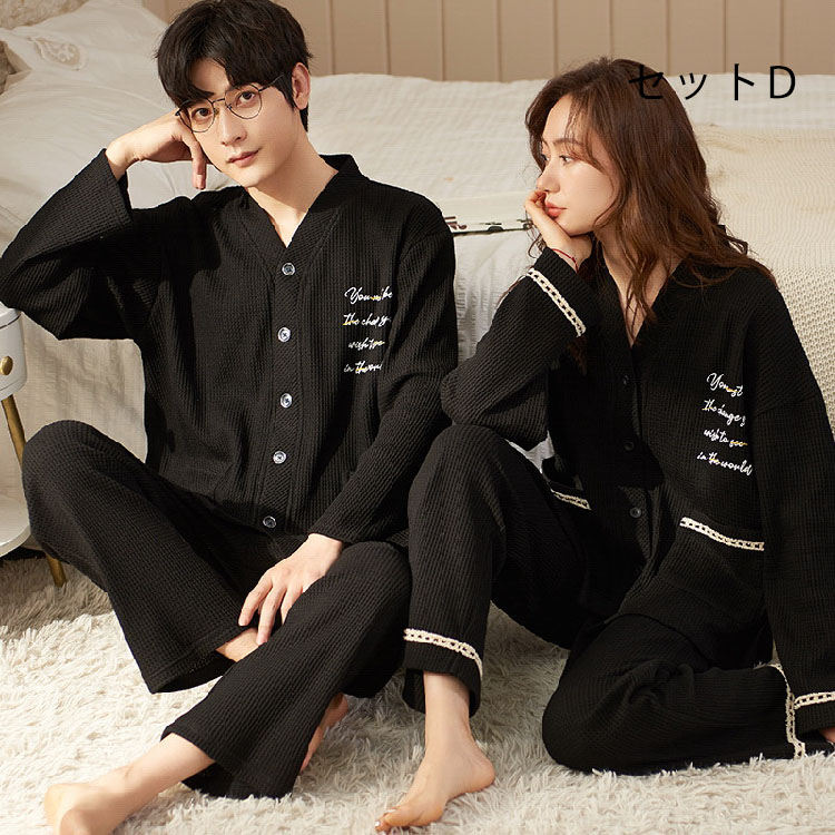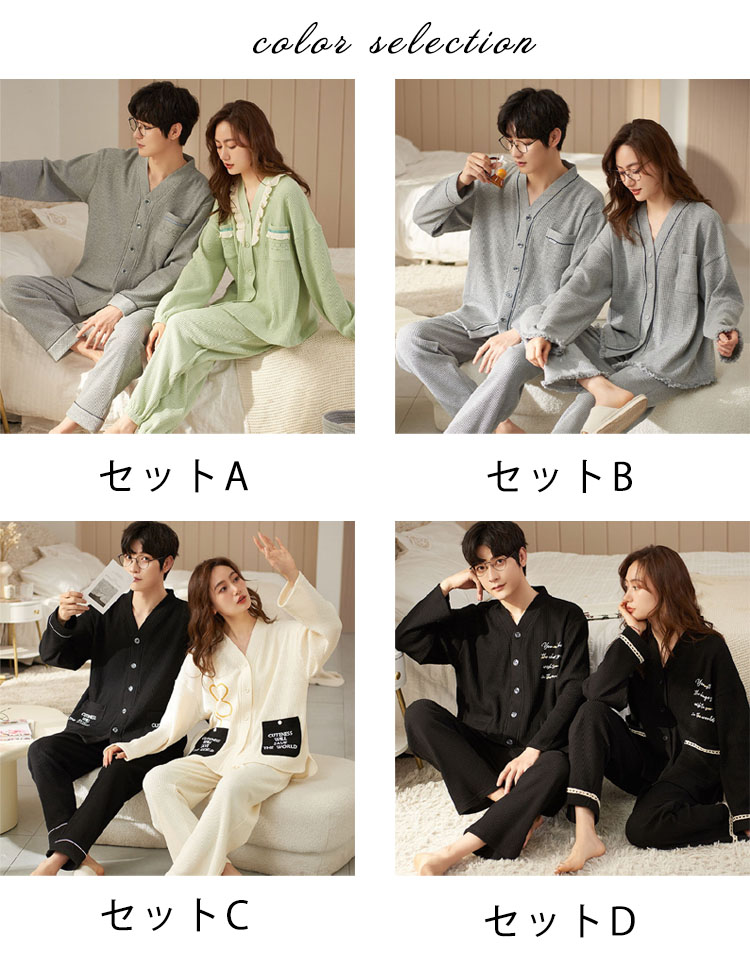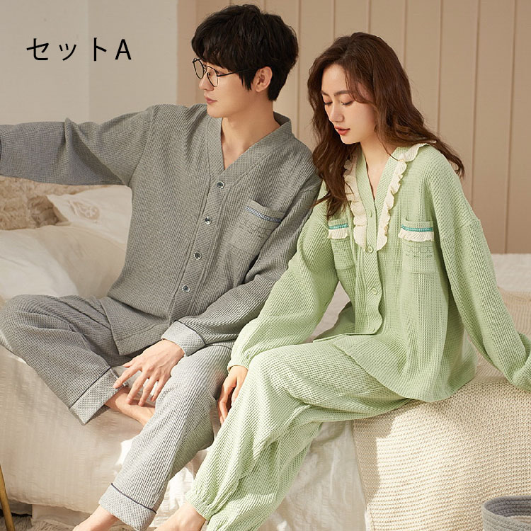 カップル ペア パジャマ 長袖 春秋
