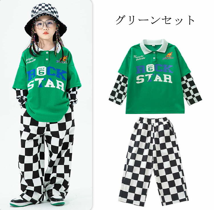 キッズ ダンス衣装 セットアップ チェ