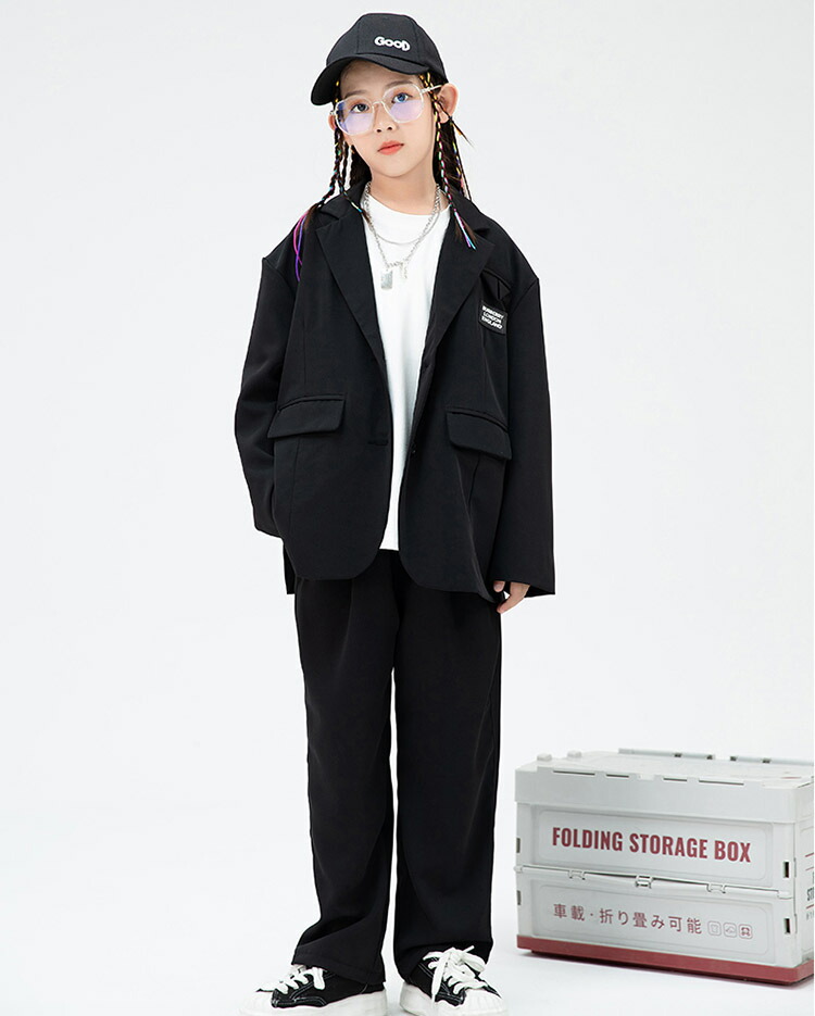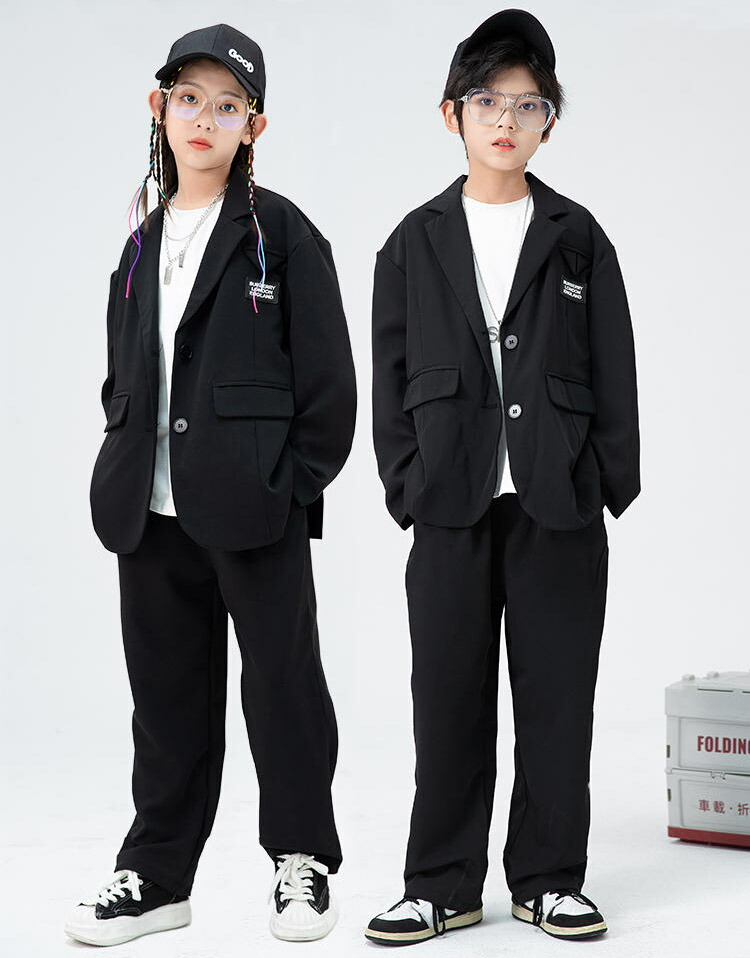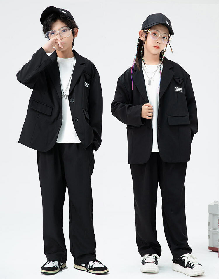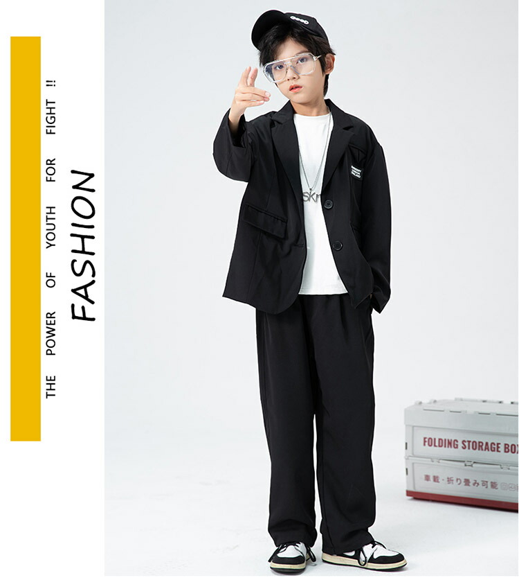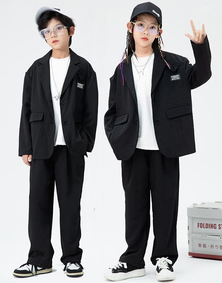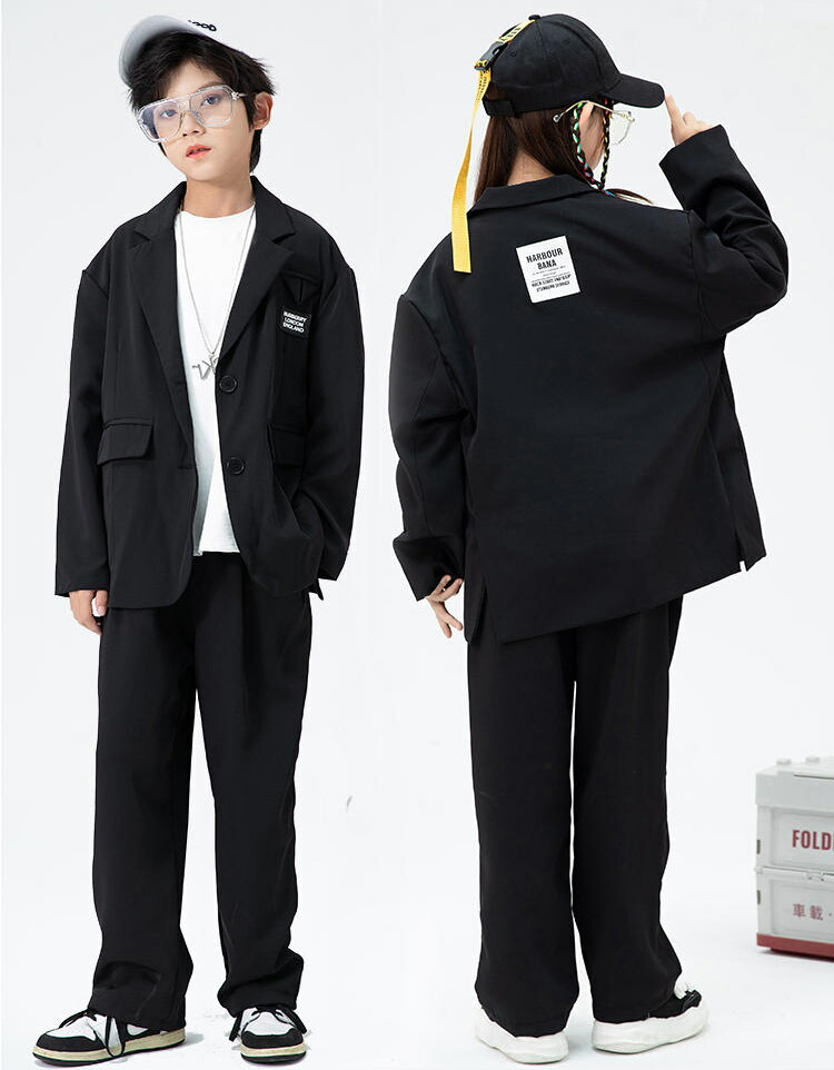 キッズ ダンス 衣装 セットアップ ヒップポップ 黒 パンツスーツ ダンススーツ 110 120 130 140 150 160 170