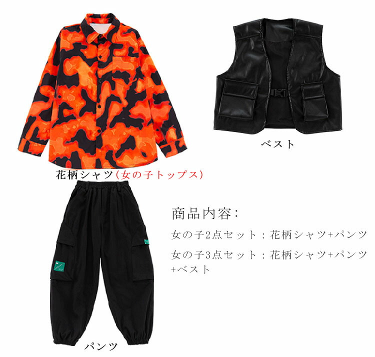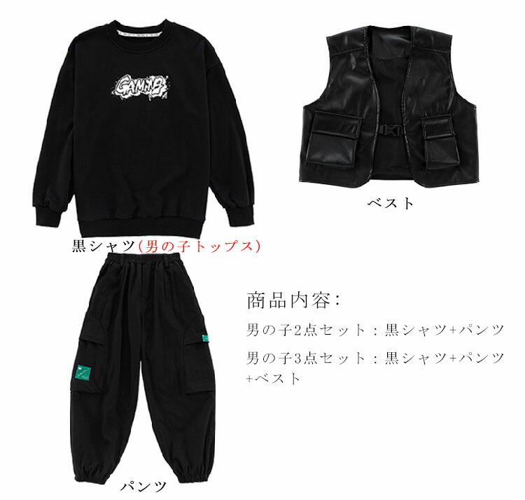 horizontal-key: ベストのみ 男の子黒tシャツのみ 女の子花柄シャツのみ パンツのみ 黒tシャツ+パンツ 花柄シャツ+パンツ 女の子上下3点セット 男の子上下3点セット