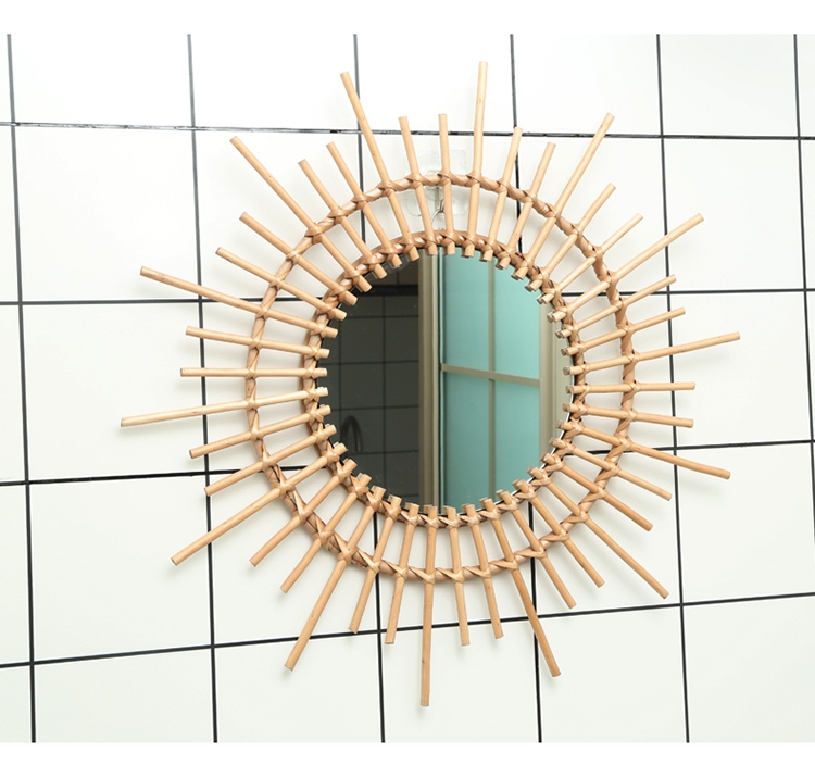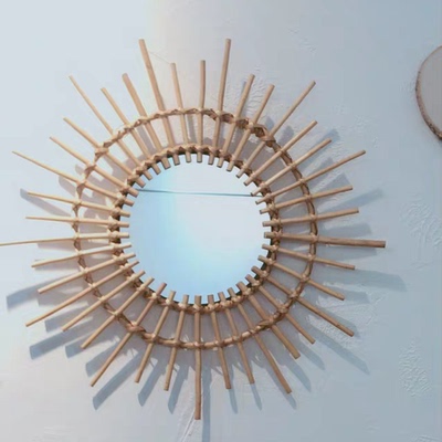 花型鏡ミラー大きい大きめ丸サークル壁掛け木木製ウッド韓国インテリア雑貨おしゃれかわいい北欧アンティークフラワースタンドミラー太陽玄関リビング寝室洗面台ナチュラルシンプル可愛いレトロ