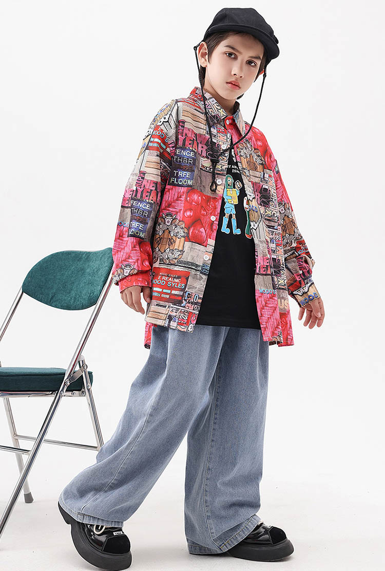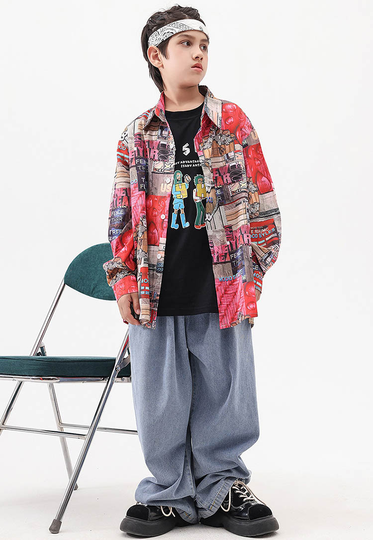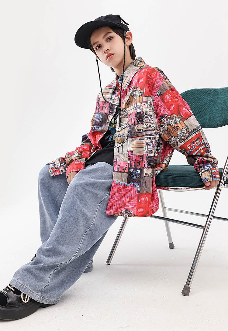 花柄シャツ 長袖 キッズダンス衣装 デ