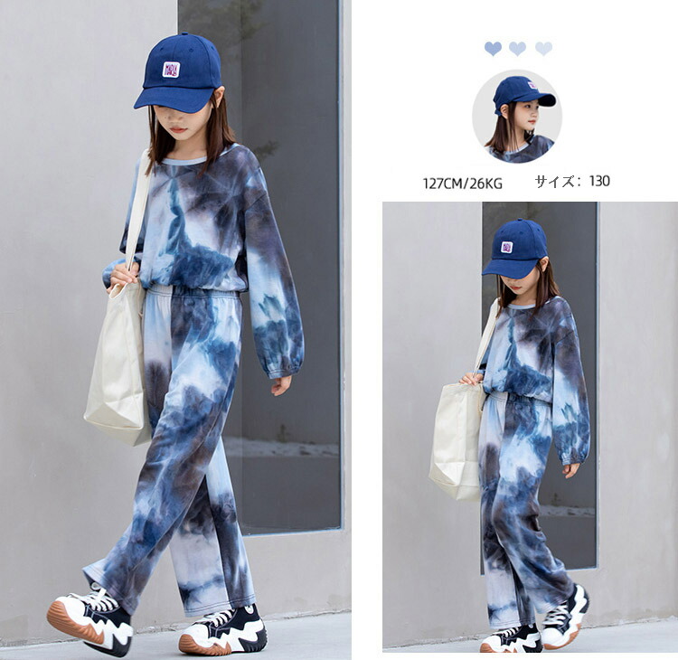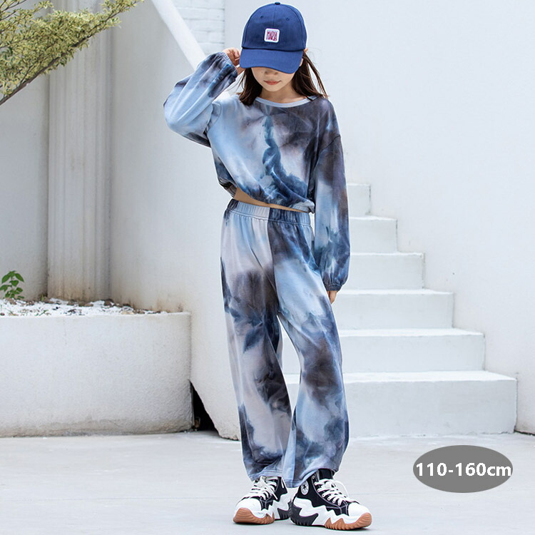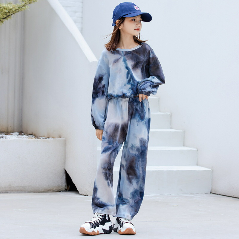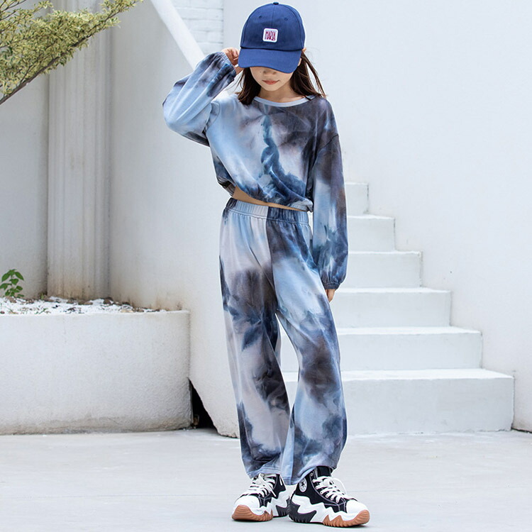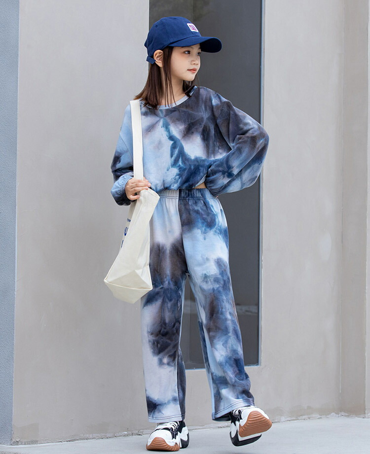 キッズダンス衣装 セットアップ ヒップホップ ダンスファッション ダンス衣装 派手 ブルー 女の子 ガールズ スーツ パンツ K-POP 韓国 演出服 舞台 ワイドパンツ 120 130 140 15