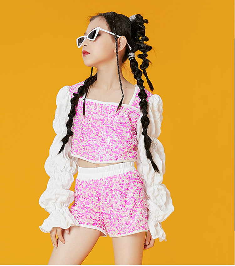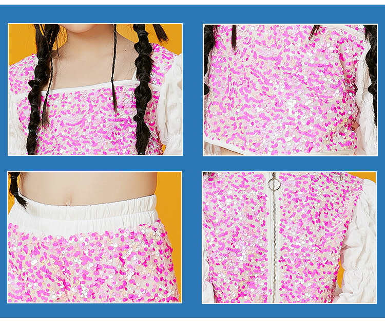 キッズダンス衣装 セットアップ へそ出し スパンコール チアダンス ジャズダンス ガールズ 韓国 ヒップホップ セットアップ 演出服 応援団 練習着 レッスンウエア 120-170cm