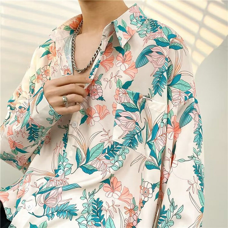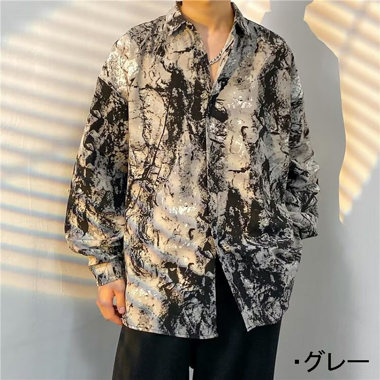 韓国 ダンス 衣装 花柄 シャツ k-pop 長袖シャツ 無地 選べる5カラー ツルツル テロテロ 秋 グレー 大きめ ユニセックス 男女 ダンス衣装 ヒップホップ衣装 大人