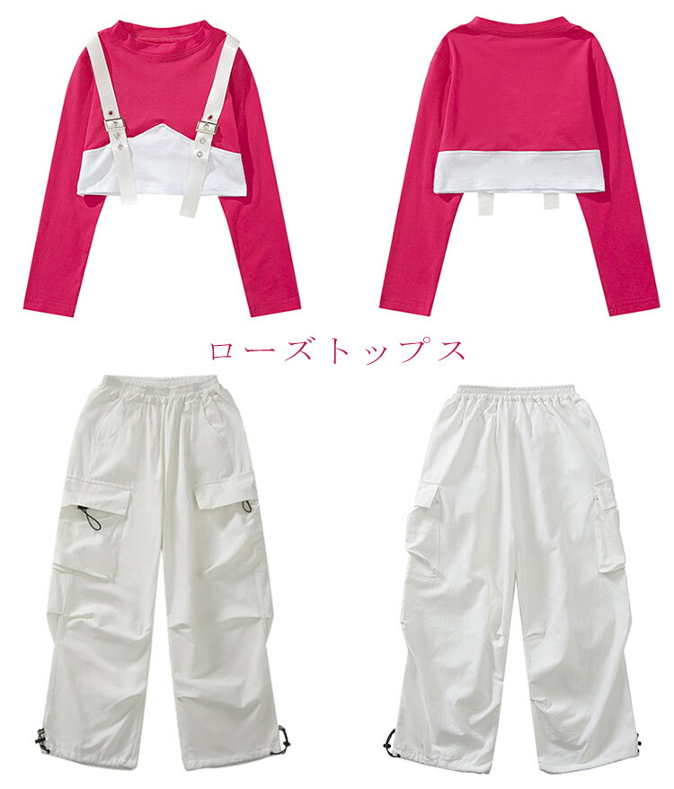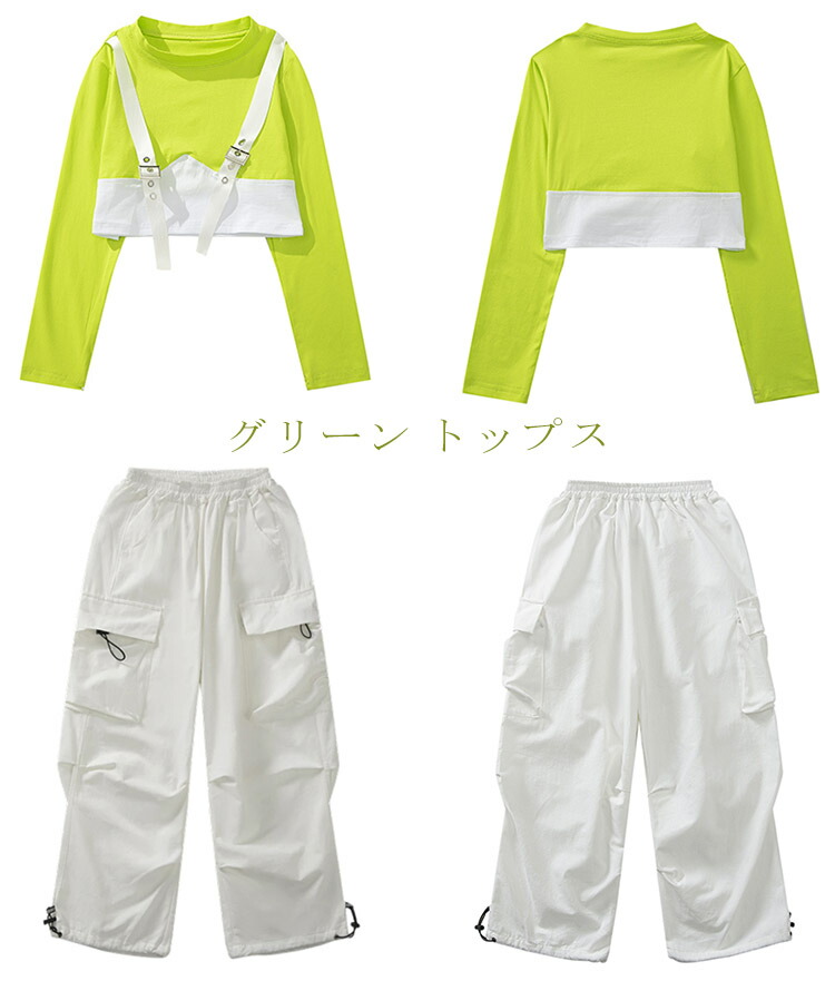horizontal-key: グリーントップスのみ ローズトップスのみ 白パンツのみ グリーン2点セット ローズ2点セット