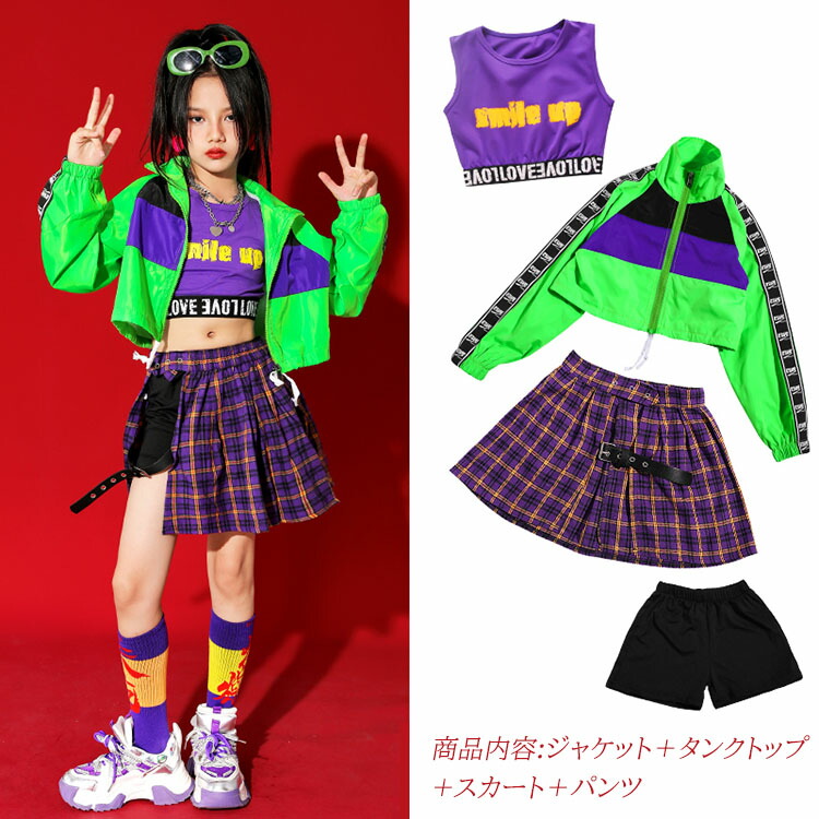 horizontal-key: ジャケットのみ タンクトップのみ チェック柄スカート+パンツ 上下4点セット