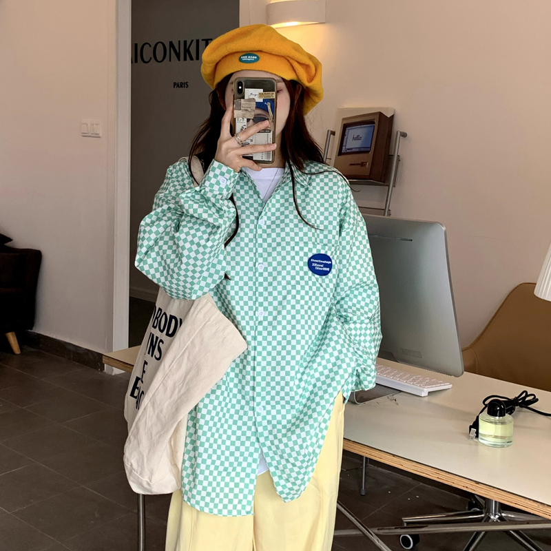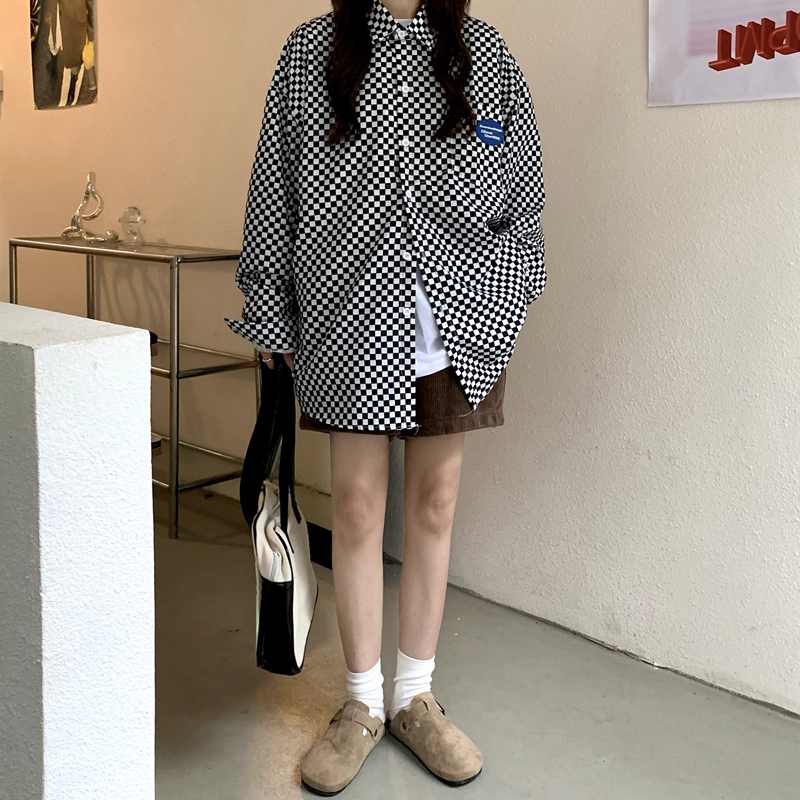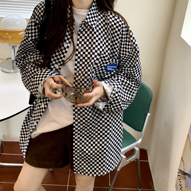 ロゴチェックシャツ2色ブラウス黒ブラッ