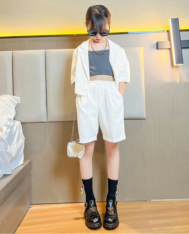 キッズ ダンス 衣装 セットアップ ヒップポップ 白 2点セット 韓国 子供服 かっこいい 110 120 130 140 150 160 170 大きいサイズ