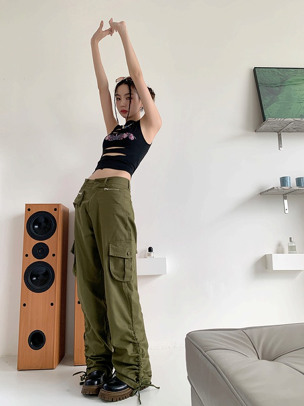 パンツ ズボン ギャザー シャーリング