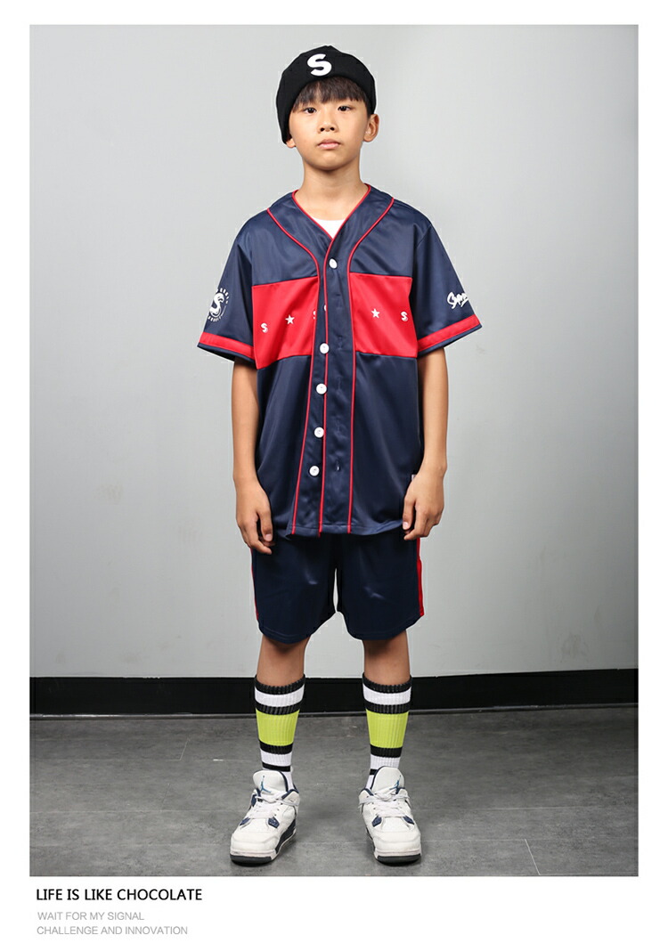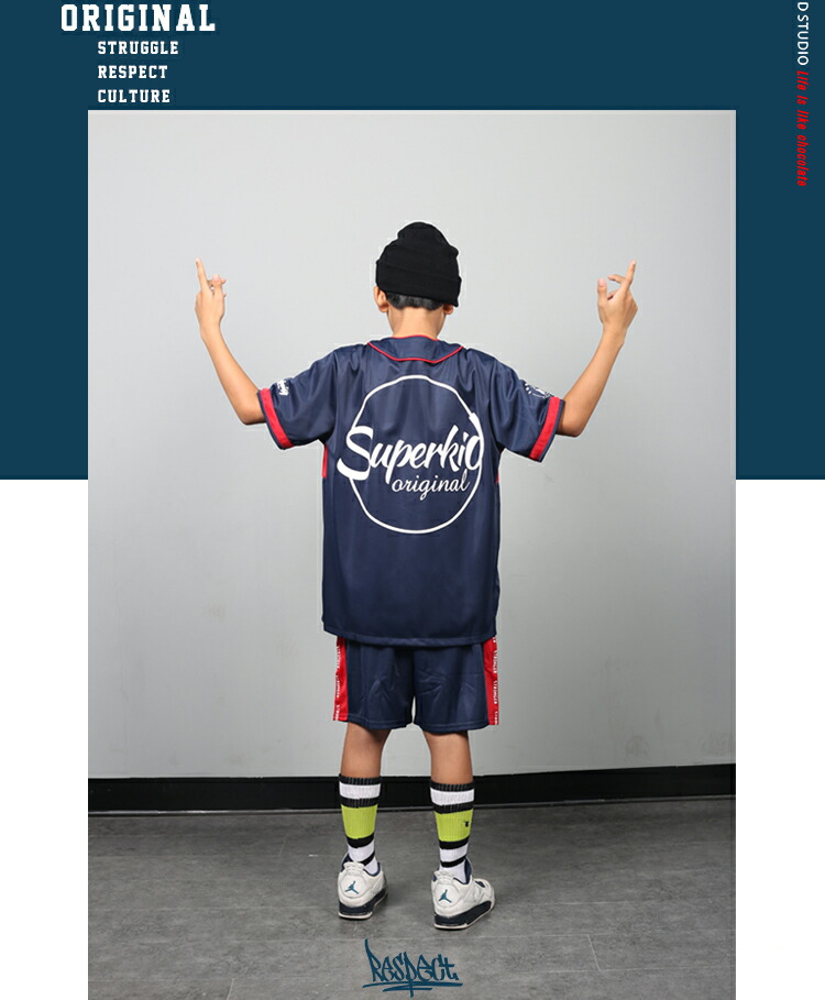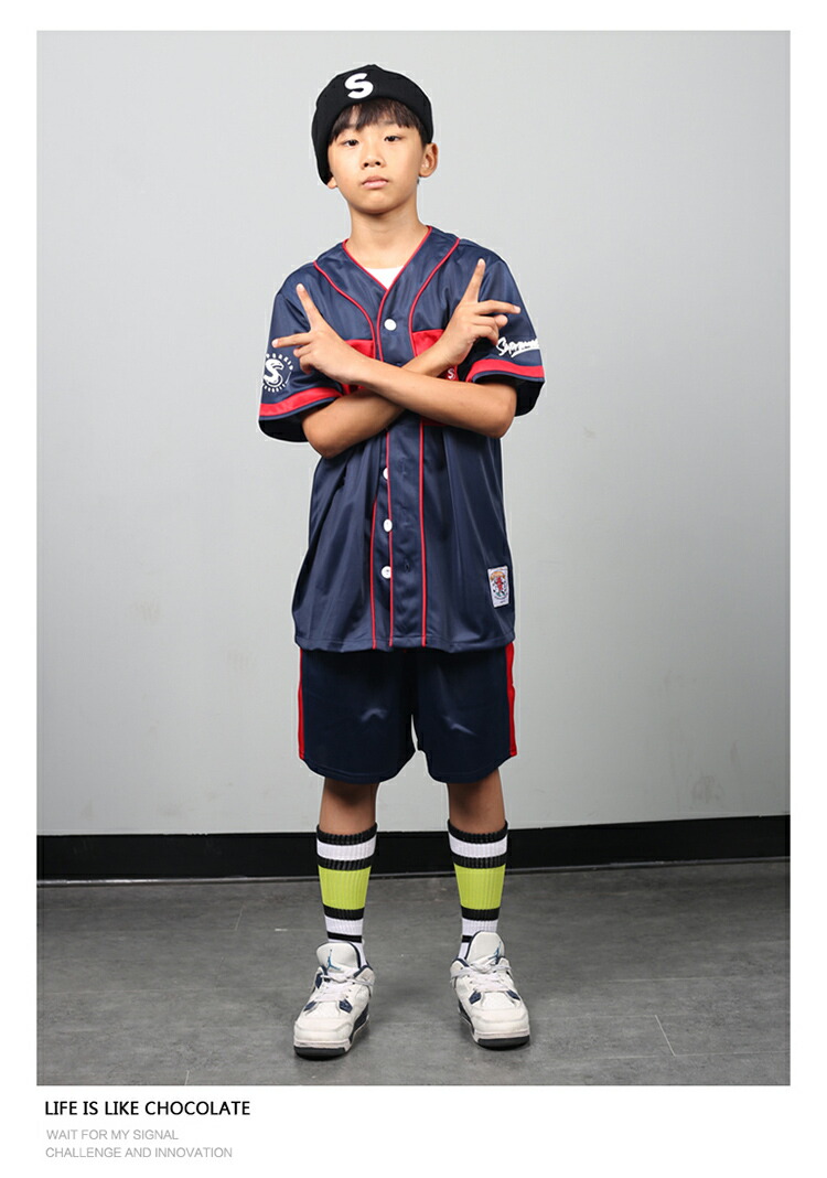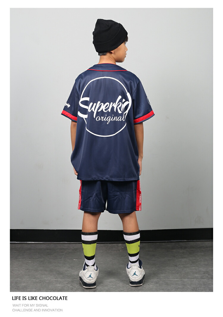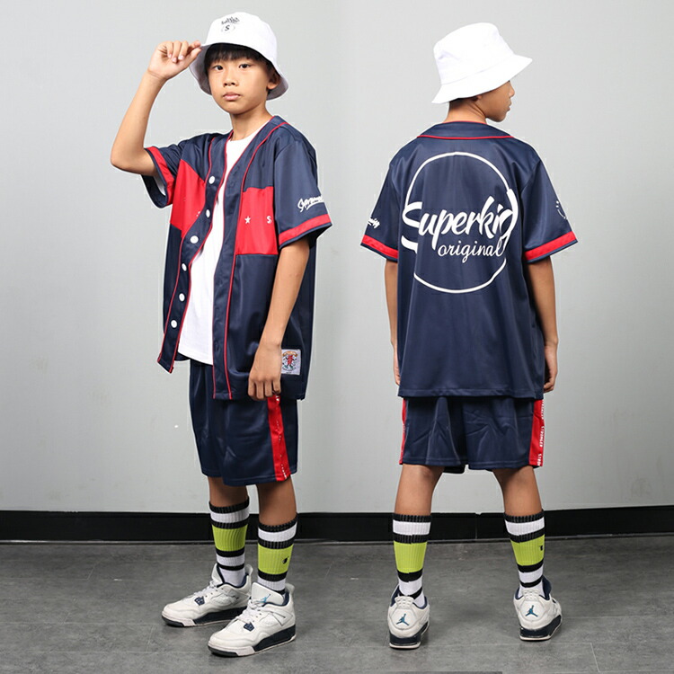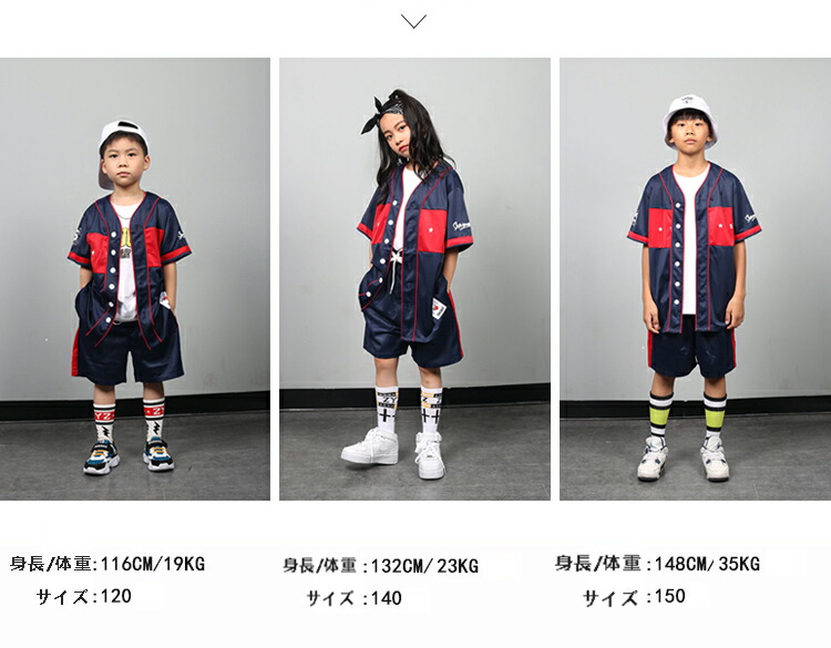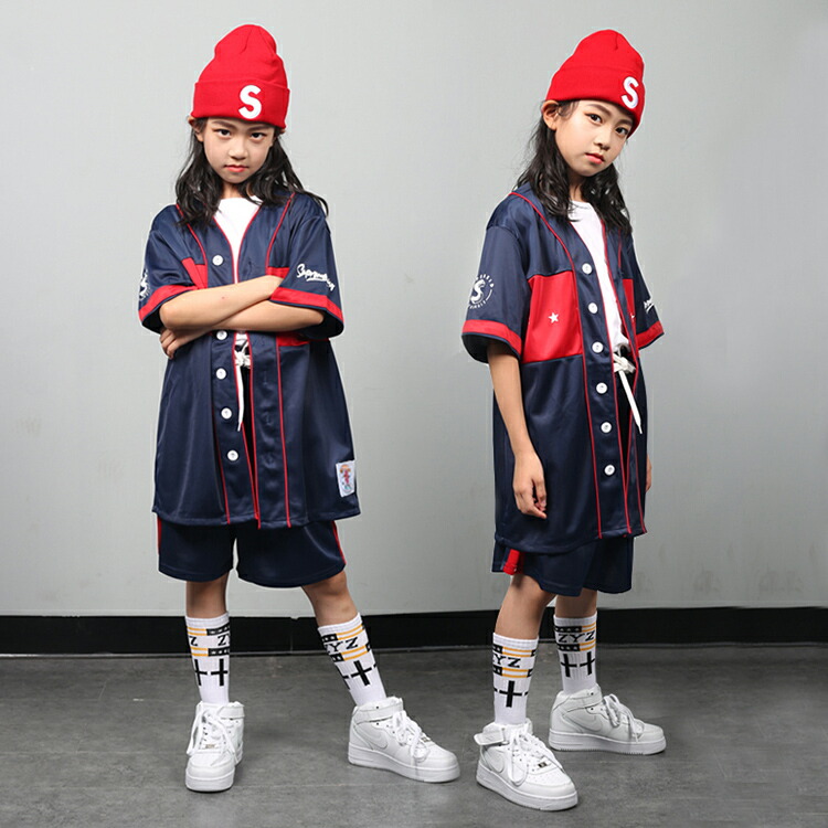 キッズ ダンス 衣装 赤 ネイビー 上