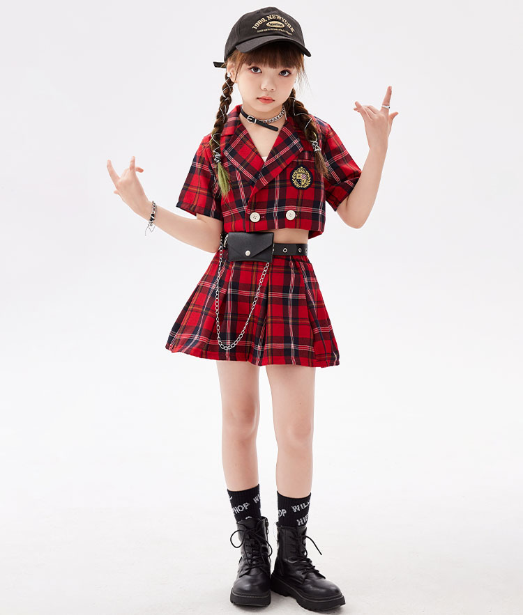 ダンス衣装 赤 黒 ヒップホップ キッ