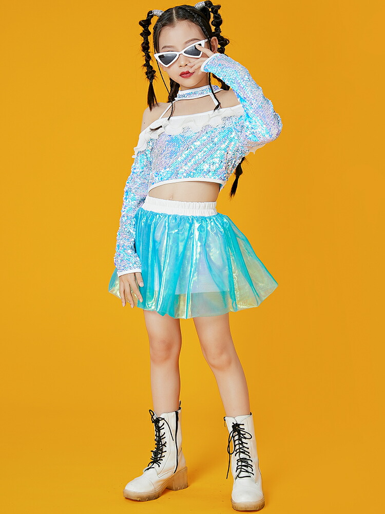 キッズ ダンス衣装 長袖 スパンコール