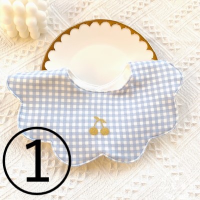 2枚セットスタイ4デザイン360U型よだれかけ男の子女の子よだれかけガーゼビブかわいいおしゃれ出産祝いギフト赤ちゃん プレゼントベビー綿コットンおでかけ刺繍襟ドットレースフリルチェックボタンさくらんぼ