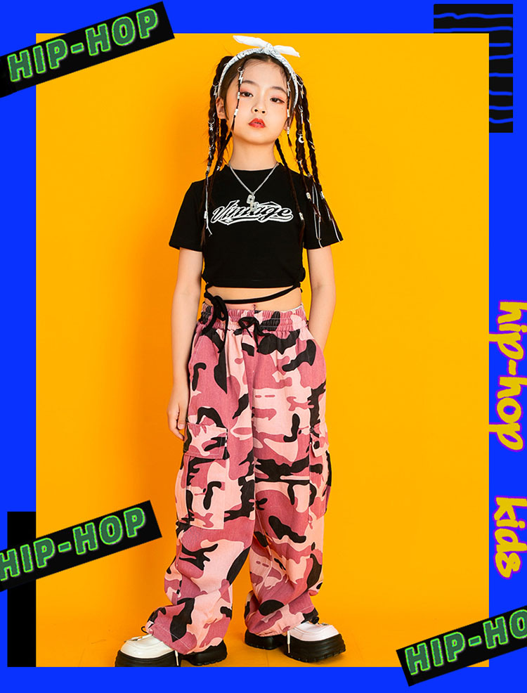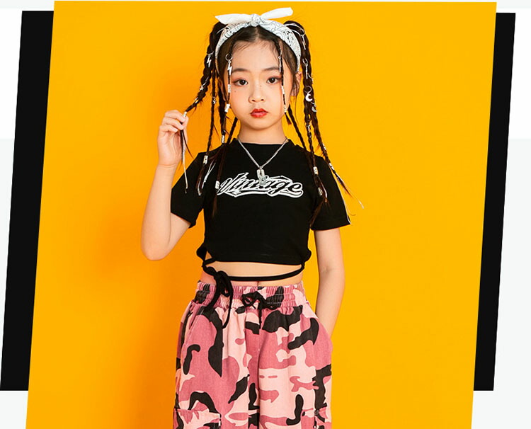 ダンス衣装 キッズ 上下セット へそ出し トップス 長ズボン ジャズダンス ガールズ 韓国 ヒップホップ hiphop 演出服 応援団 練習着 110-180cm