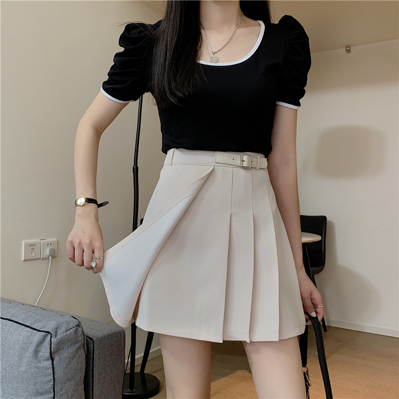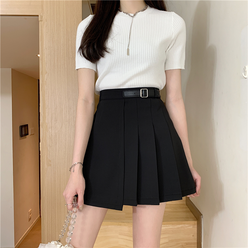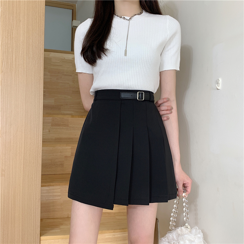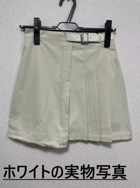 ベルトプリーツスカート2色ボトムスミニ膝上白ホワイト黒ブラック無地シンプルアシンメトリーおしゃれダンス衣装ヒップホップHIPHOPレディースガールズ可愛い女の子短い短めミニスカショート丈Aラインフリル
