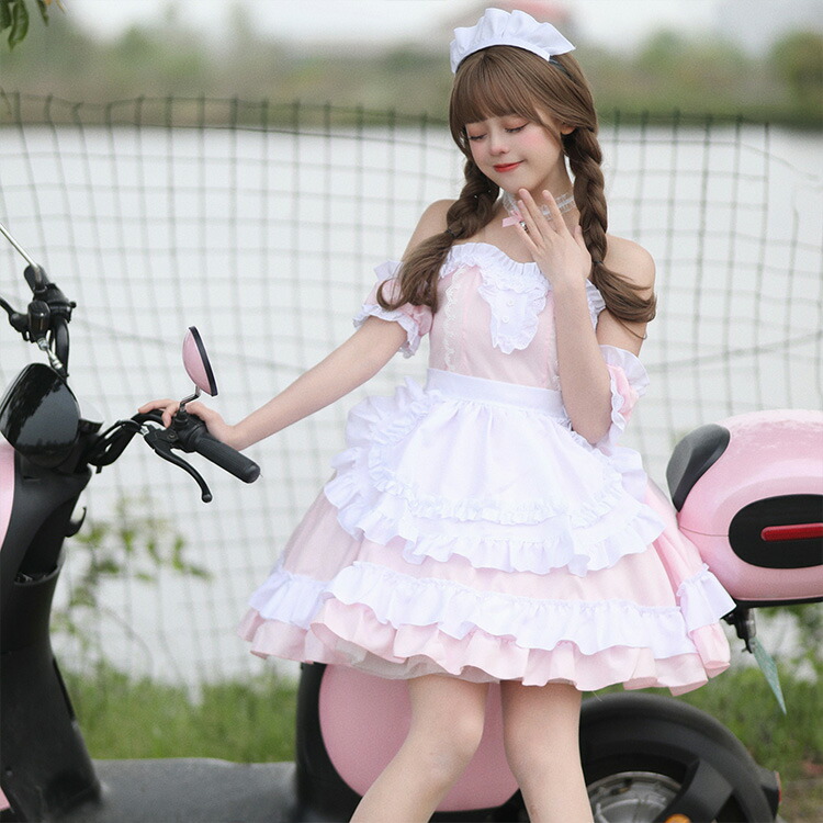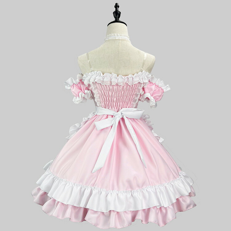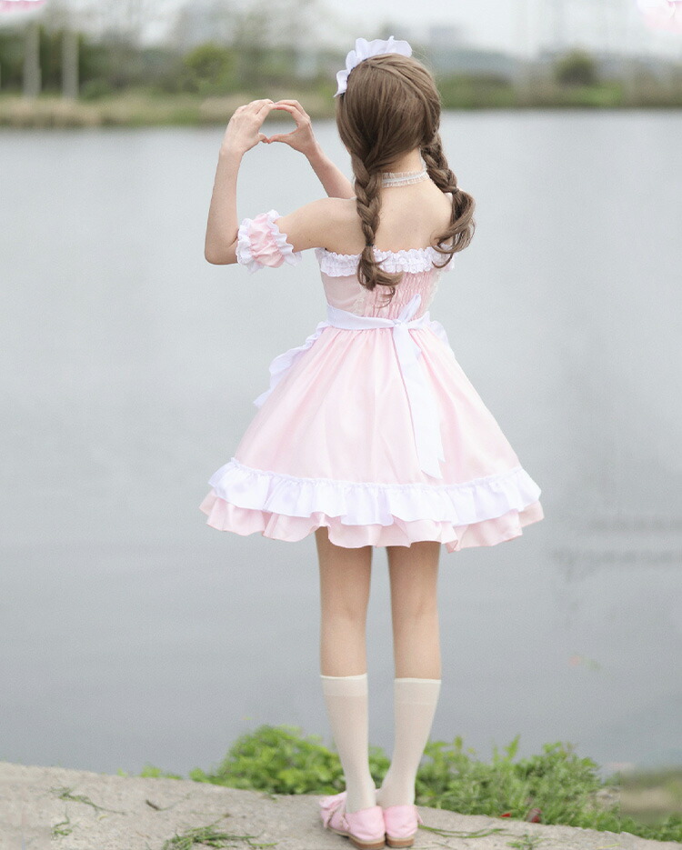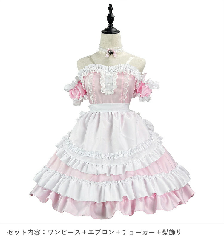 ・メイド服セット (ワンピース+エプロン+チョーカー+髪飾り)