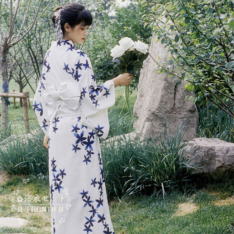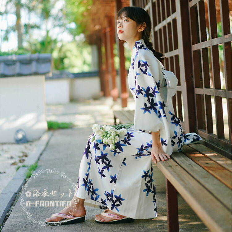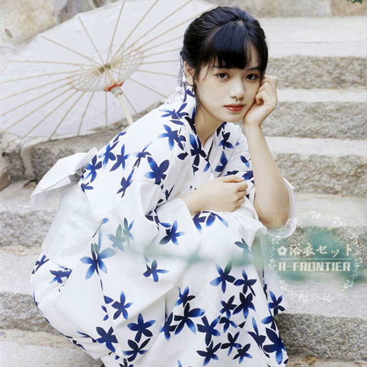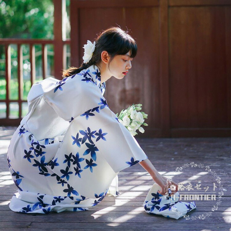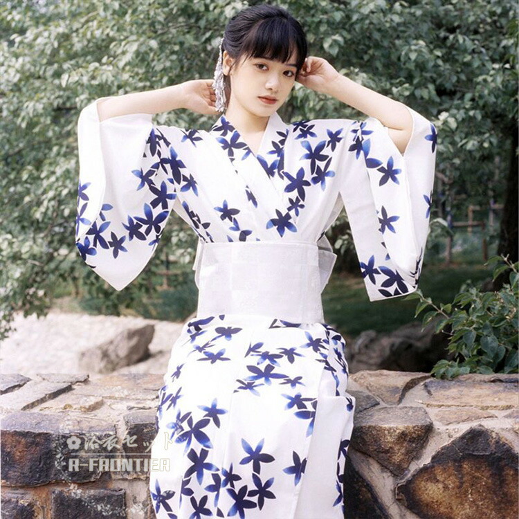 horizontal-key: 浴衣+白簡易帯 浴衣+白作り帯