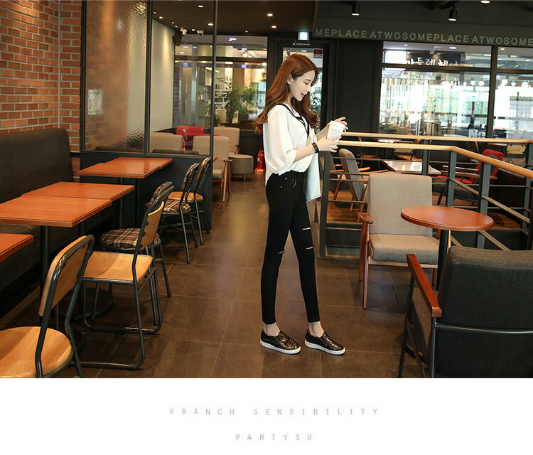 デニムパンツ ビジュー付き