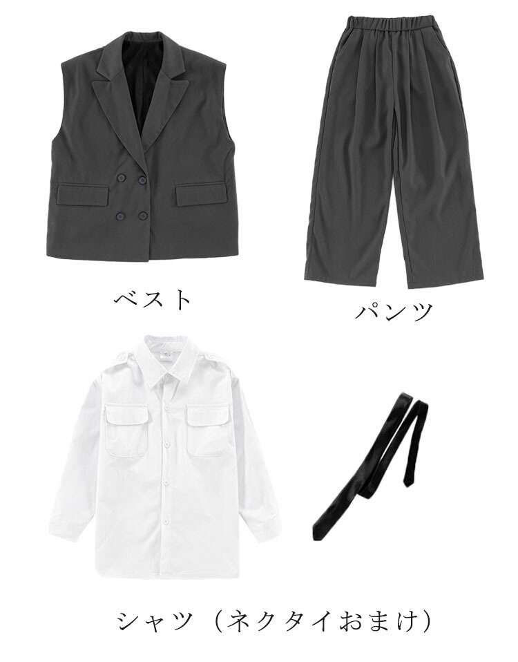 horizontal-key: シャツ(ネクタイ付) ベスト+パンツ 3点セット