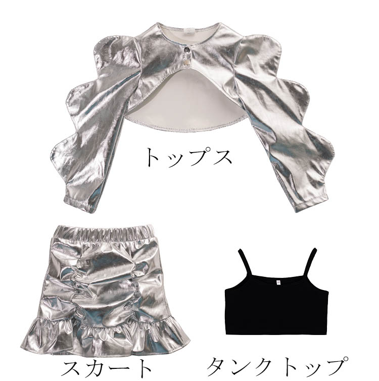 キッズダンス衣装 シルバー へそ出し