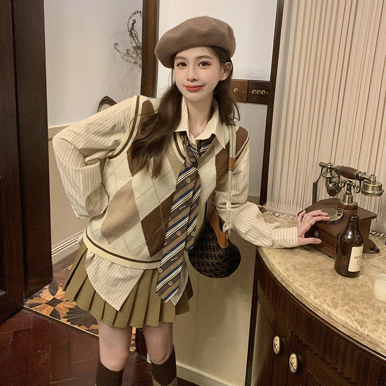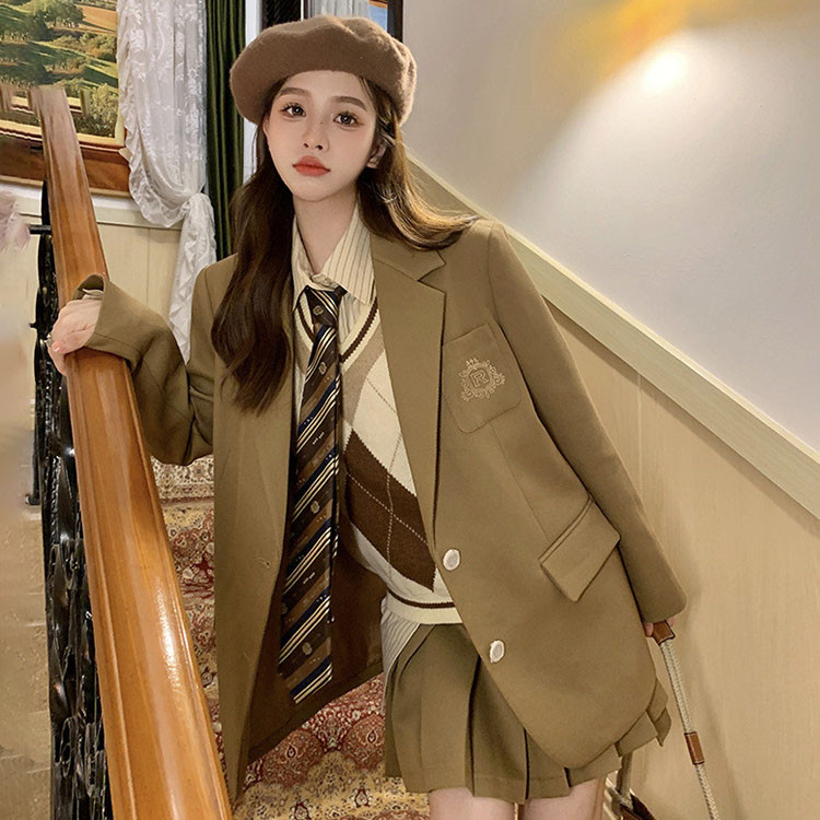 horizontal-key: ブレザーのみ 「ベスト+シャツ+スカート」 4点セット