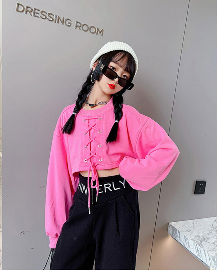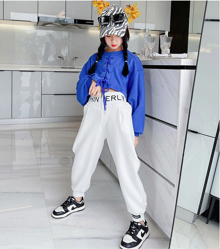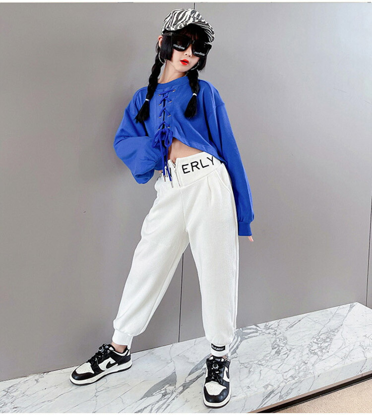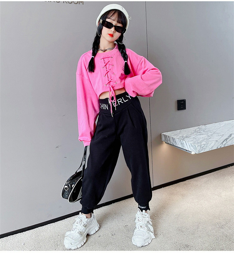 子供 セットアップ ダンス衣装 キッズ チアダンス へそ出し 長袖トップス パーカー ロングパンツ 韓国 ヒップホップ hiphop セットアップ 演出服 応援団 練習着 120-170