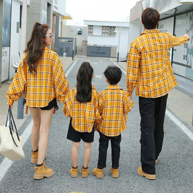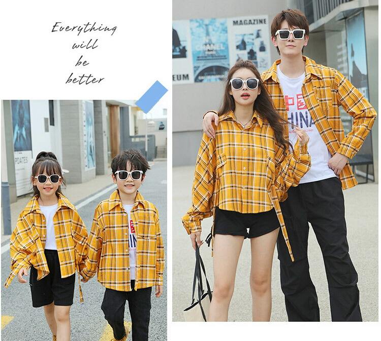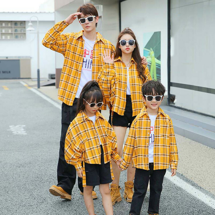 秋 親子コーデ ペアルック 柄シャツ