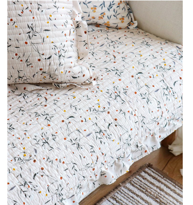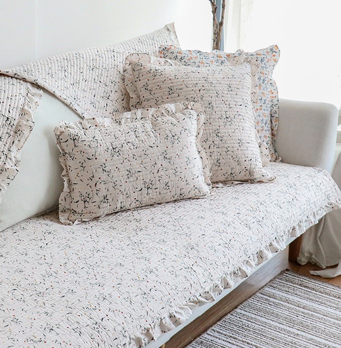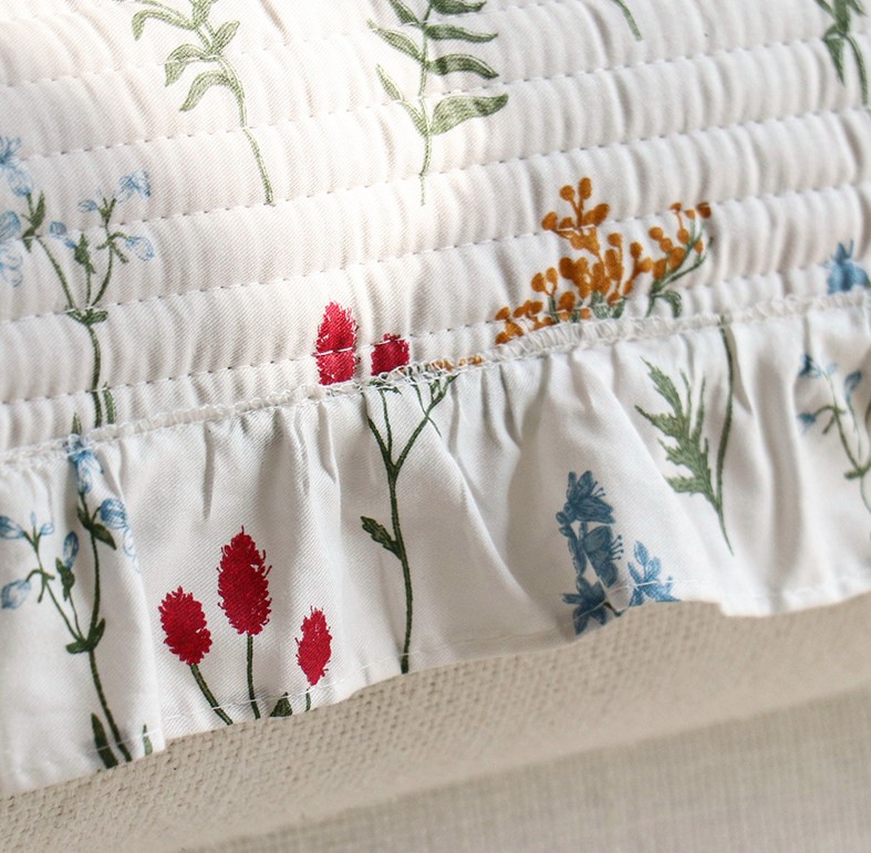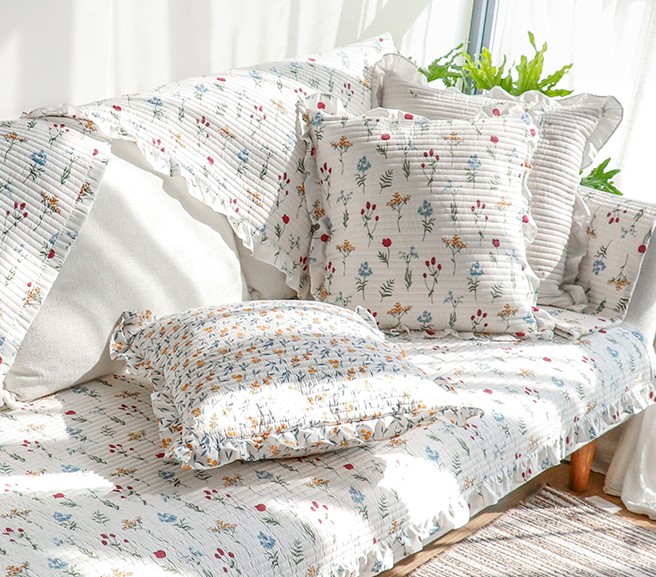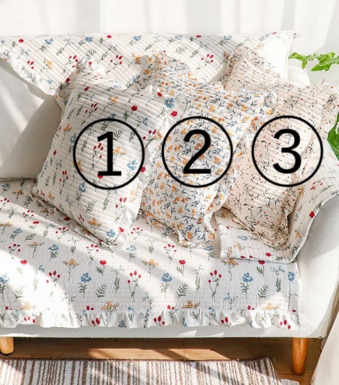 花柄フリルクッションカバー3色フラワー小花柄フレア45cm×45cmおしゃれ可愛い北欧韓国インテリア雑貨コットン綿洗えるレトロヴィンテージ風白ホワイトベージュ四角正方形レース総柄