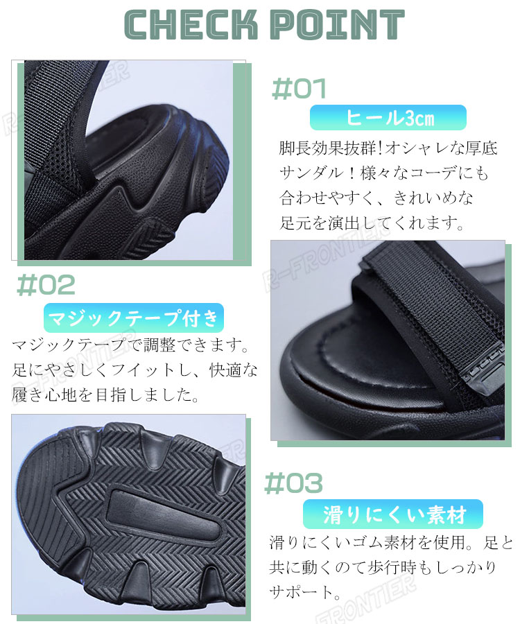 スポーツサンダル 厚底 3cm up