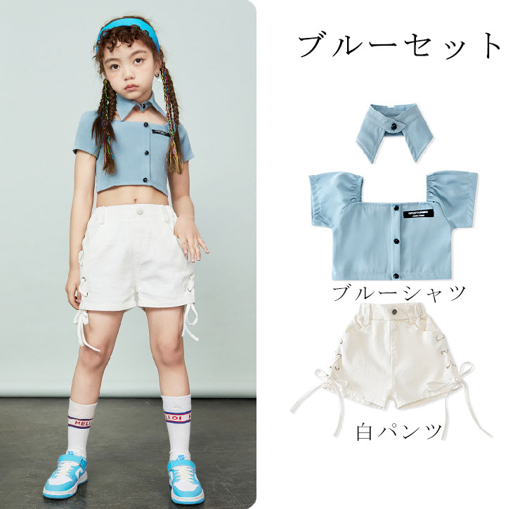 horizontal-key: ブルーシャツのみ パープルシャツのみ 白パンツのみ 黒パンツのみ ブルー2点セット パープル2点セット