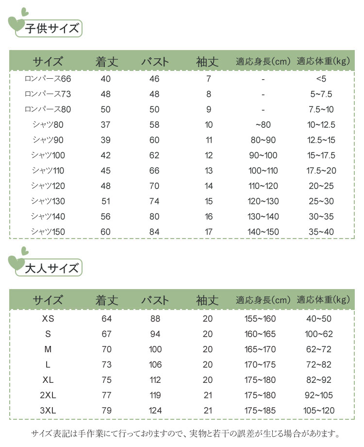 Key2: ロンパース66 ロンパース73 ロンパース80 シャツ80 シャツ90 シャツ100 シャツ110 シャツ120 シャツ130 シャツ140 シャツ150 ママXS ママS ママM ママL パパXS パパS パパM パパL パパXL パパ2XL