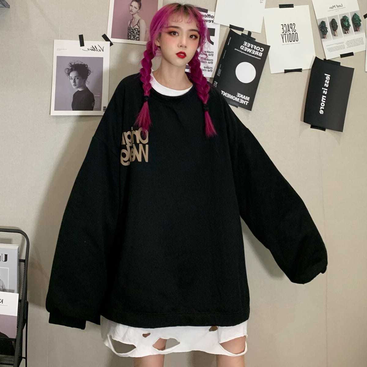 バックプリントトレーナー長袖トップスカ