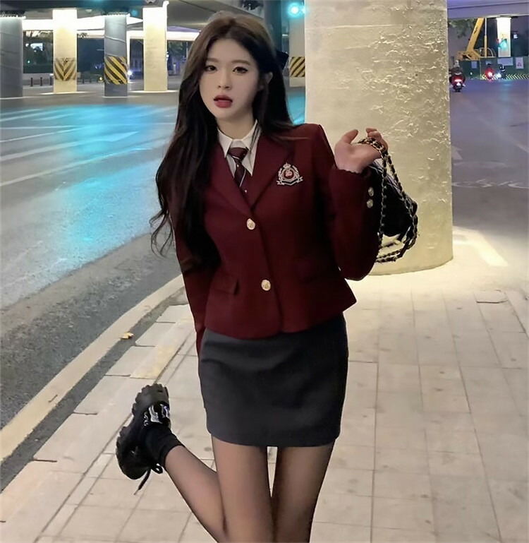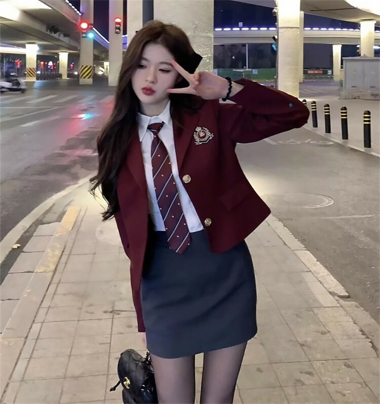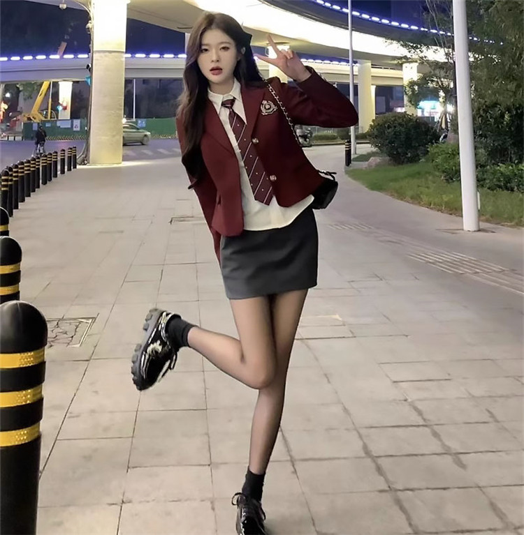 horizontal-key: スカートのみ 白シャツのみ「ネクタイ付き」 ブレザーのみ ブレザー+スカート ブレザー+シャツ+スカート