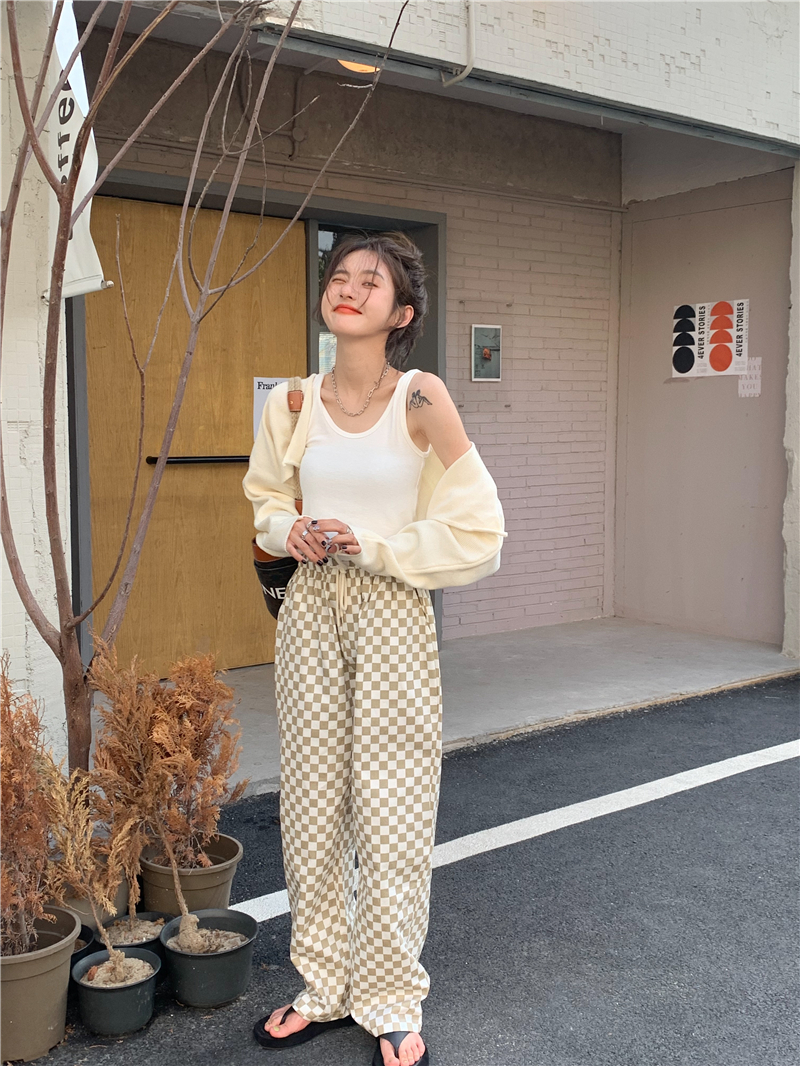 チェックパンツ2色ズボンボトムスロング