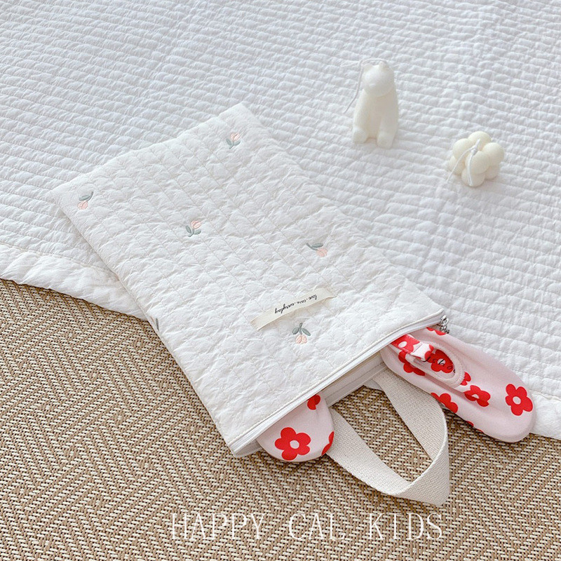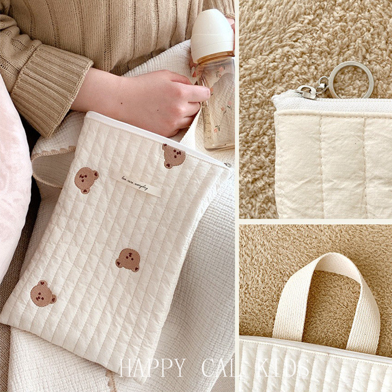 3色コットンマルチポーチ韓国雑貨北欧赤ちゃんベビーグッズ白ホワイトくまベアチューリップ花柄ロゴフック29×21おむつミルク化粧おしゃれかわいいトラベルポーチママ大容量 綿手提げトートチャック付バッグ