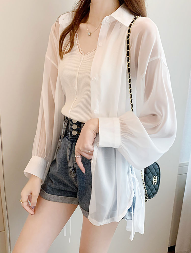 シアースリーブ ドッキングシャツ ボウタイシャツブラウス
